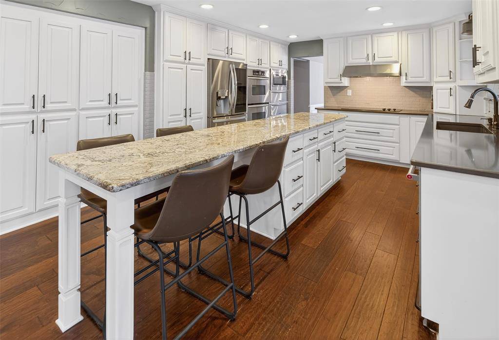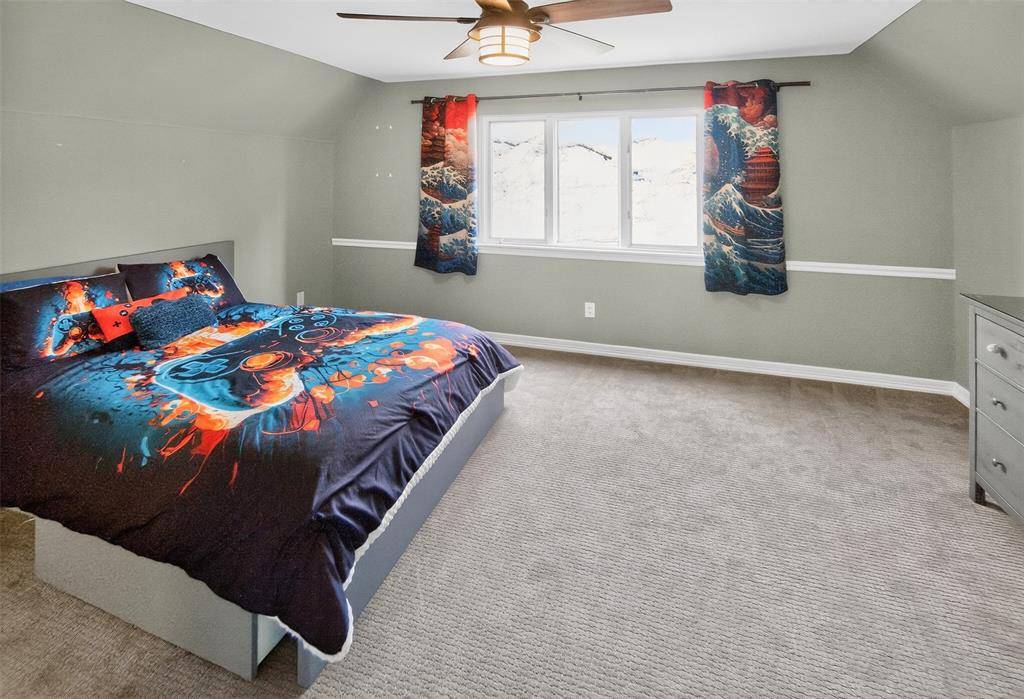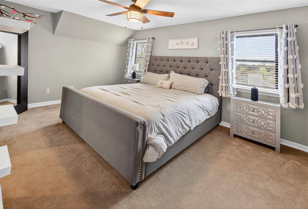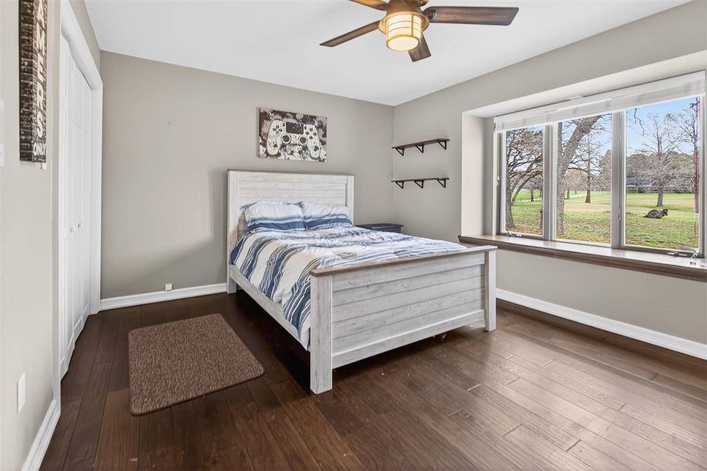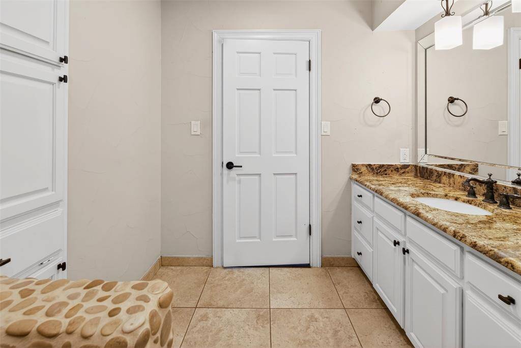 Experience waterside living in the heart of Highland Village on this rare 4+ acre private retreat overlooking the water and scenic views of Doubletree Ranch Park. Tucked away at the end of a long, inviting driveway, this impressive estate offers space, privacy, and exceptional amenities in a truly one-of-a-kind setting. Step inside the main home and be welcomed by a dramatic open stairwell with cathedral ceilings, rich wood floors, classic white paneling, and a stunning chandelier that creates an elegant first impression. The main level offers a versatile layout with two spacious living areas, a secondary bedroom, private study, formal dining room, and the heart of the home, the kitchen and family living space. The living room features decorative wood beams, adding warmth and character, while the kitchen is beautifully appointed with abundant white cabinetry, accent granite countertops, double ovens, and stainless appliances. Just beyond, a bright sunroom frames picturesque views of the backyard and pool, seamlessly connecting indoor and outdoor living. Upstairs, the primary suite is a true retreat, featuring an oversized bedroom with a private sitting area, a remodeled spa-like bathroom with a large walk-in shower, and a private balcony overlooking the water, the perfect place to start or end your day. The upper level also includes three additional secondary bedrooms, providing ample space for family and guests. Step outside to enjoy the resort-style backyard, complete with a large pool, expansive deck, and sweeping water views, all backing to the natural beauty of Doubletree Ranch Park. A separate guest house offers incredible flexibility with a bedroom, living and kitchen combo, and full bathroom, making it perfect for guests, multigenerational living, or private retreat. The property's value is uniquely enhanced by two newly surveyed additional lots, offering a rare opportunity for further development or the creation of a multi-generational family compound.