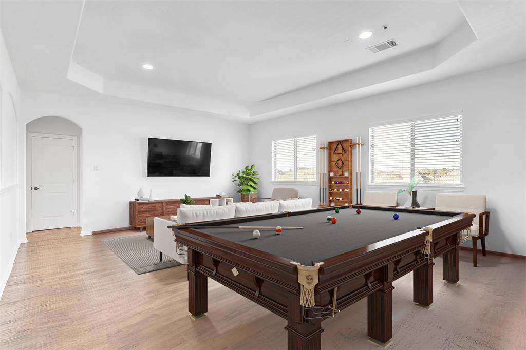 Welcome to this beautifully maintained home in the heart of Highland Village, showcasing true pride of ownership and an ideal floorplan designed for modern living. The main level features a spacious primary suite, an additional bedroom, and a dedicated study, offering both comfort and flexibility. The chef's kitchen is the centerpiece of the home, complete with a gas cooktop, double ovens, a walk in pantry, and elegant natural stone countertops. Designed for gatherings, the kitchen opens seamlessly to the family room, creating a warm and inviting space for both everyday living and entertaining. Upstairs, enjoy a large media game room along with three generously sized bedrooms and two full bathrooms, providing plenty of space for family and guests. The private backyard is a true retreat, featuring a large covered patio, heated saltwater pool, spa, and a covered outdoor kitchen perfect for year round enjoyment. A three car garage adds extra storage and ample parking. Situated within the highly regarded Lewisville ISD and zoned to sought after Highland Village schools, this home offers an excellent location close to shopping, dining, Lake Lewisville, parks, and hike and bike trails all with convenient access to DFW Airport in just 20 minutes. This is a rare opportunity to own a home that combines exceptional design, modern amenities, and a prime location in Highland Village.