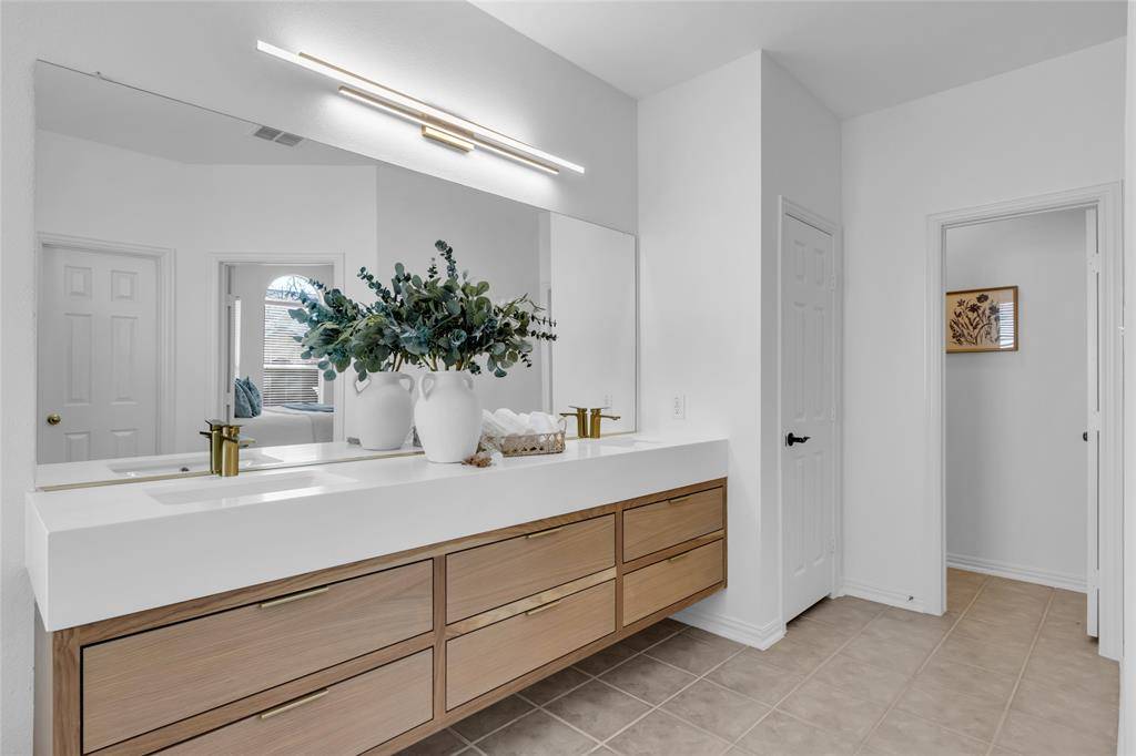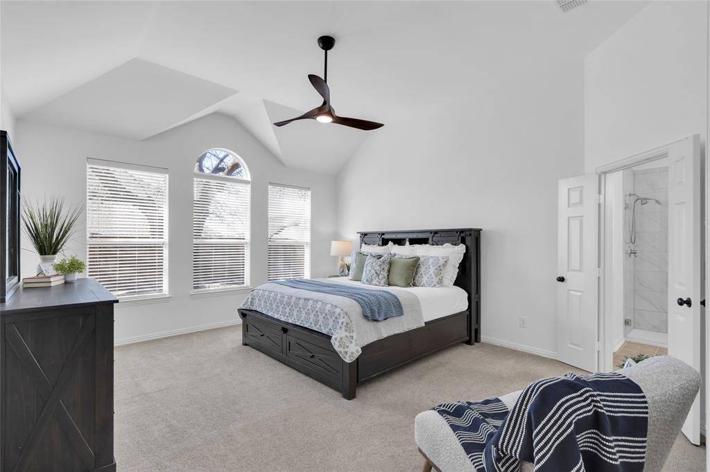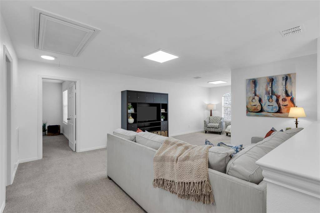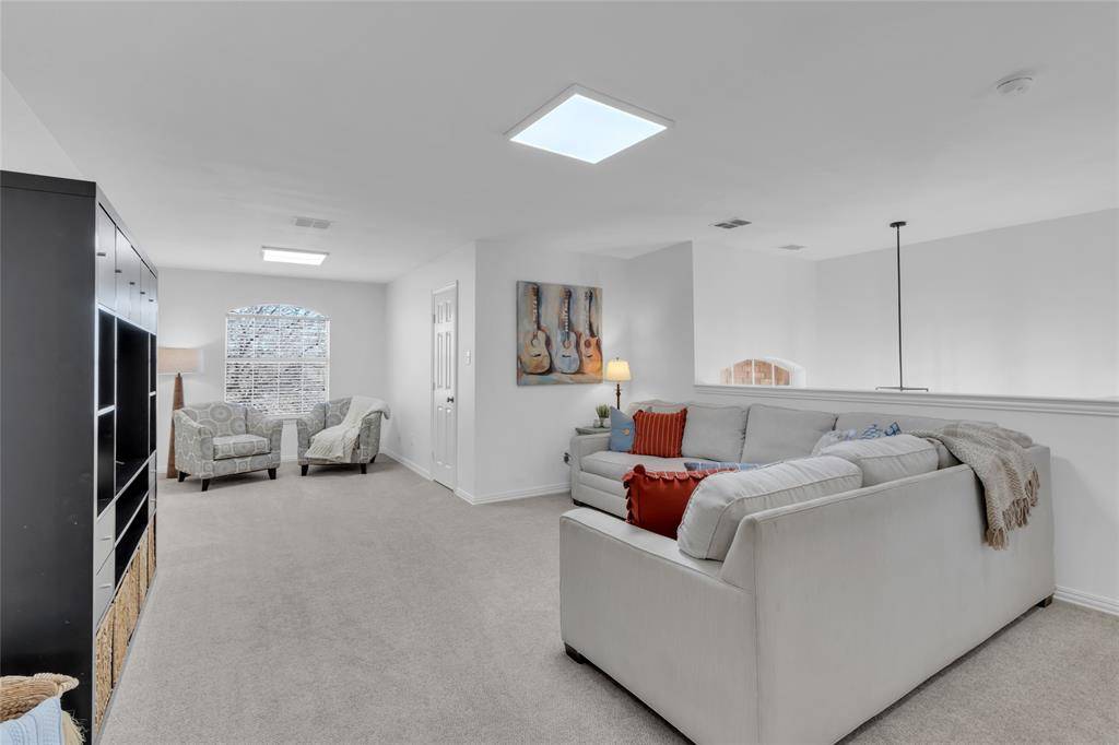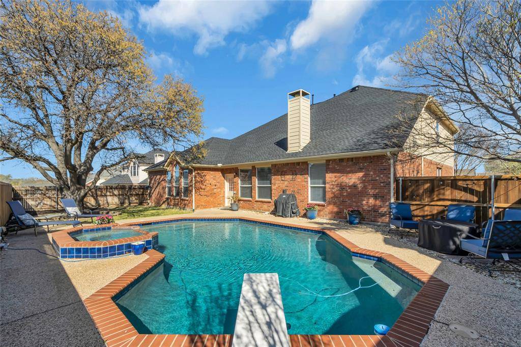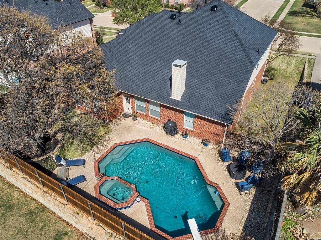 BEAUTIFULLY UPDATED AND TRULY MOVE IN READY IN THE HEART OF HIGHLY DESIRABLE HIGHLAND VILLAGE! Perfectly situated just steps from the neighborhood catch-and-release pond and convenient access to scenic hike and bike trails, Lake Lewisville, top-rated schools, and exceptional shopping and dining. This spacious, METICULOUSLY MAINTAINED HOME showcases a thoughtfully designed floor plan with the PRIMARY SUITE AND SECONDARY BEDROOM WITH FULL BATH ON MAIN LEVEL, along with formal dining and multiple inviting living spaces ideal for both everyday living and entertaining. Upstairs features a LARGE GAME ROOM and three generously sized bedrooms, all with walk-in closets. One of the bedrooms is oversized and offers incredible flexibility, easily serving as an additional living area, media room, or private retreat. The backyard offers a peaceful outdoor escape with a sparkling pool and attached spa, mature trees, and plenty of space to relax or entertain. The third-car garage is currently set up as a workout space, with weights and equipment conveying with the sale. Abundant storage can be found throughout the home. Recent improvements include a brand new roof, fresh interior paint throughout, updated kitchen and primary bath, both HVAC units replaced within the last five years, and PebbleTec resurfaced pool with pool pump replaced within the last five years. With its exceptional location, thoughtful updates, and versatile living spaces, this is a RARE OPPORTUNITY to own a truly special home in one of Highland Village's most desirable areas. Homes like this don't come along often - schedule your private showing and experience it for yourself!