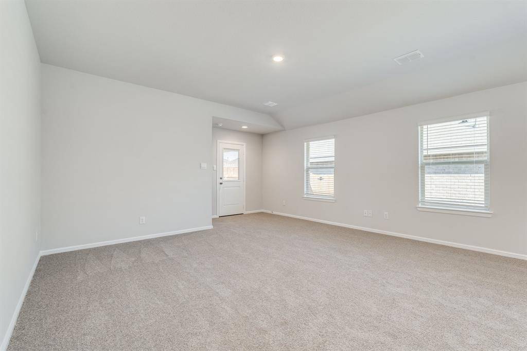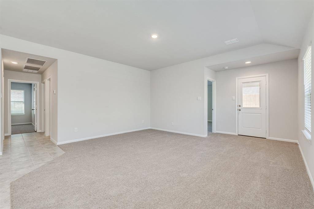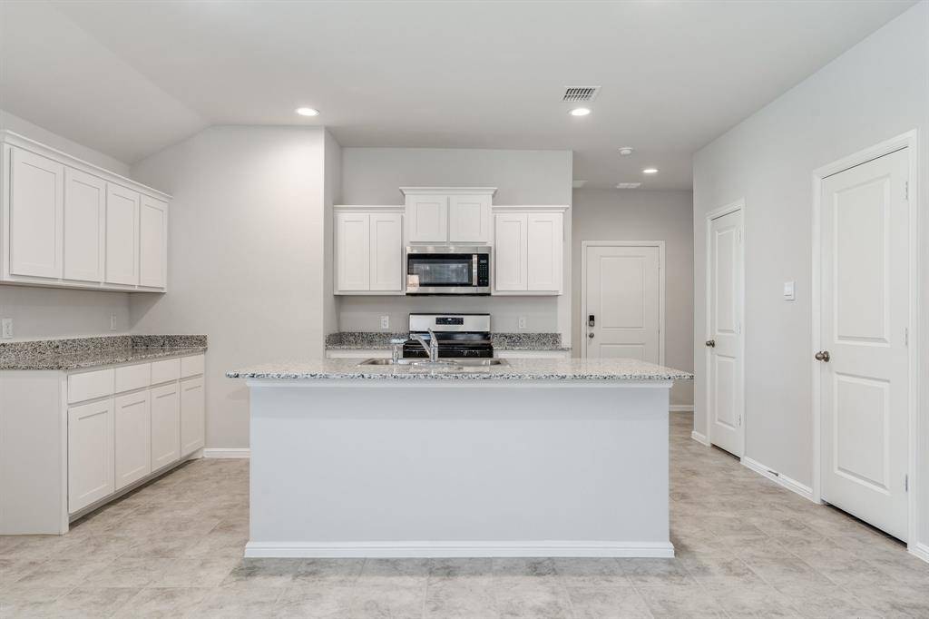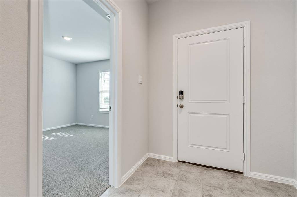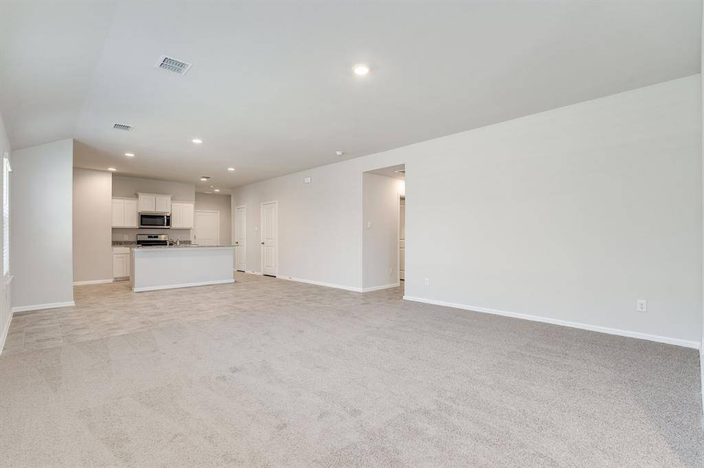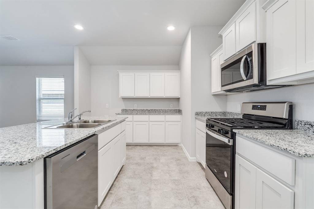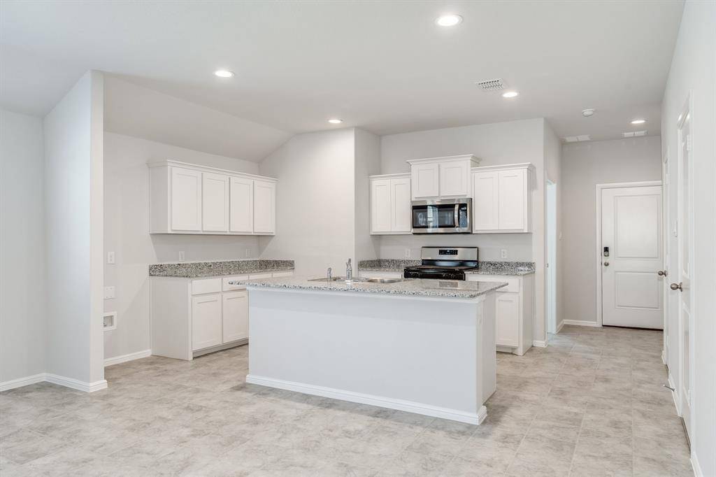 Section 8 welcome. Built in 2023, this well-maintained 4-bedroom, 2-bath home is located in the desirable Cambridge Brook community on the border of Denton and Argyle. The bright, open-concept floor plan features a spacious chef's kitchen overlooking the family and dining areas, complete with granite countertops, abundant white cabinetry, stainless steel appliances, gas range, built-in microwave, dishwasher, refrigerator, island, and walk-in pantry. The private primary suite is thoughtfully separated from the secondary bedrooms for added privacy. Ceramic tile flooring runs through the entry, hallways, kitchen, and wet areas. Washer and dryer are included. Enjoy outdoor living on the Texas-sized covered patio overlooking a fully sodded backyard with a scenic greenbelt behind it. Conveniently located within 4 miles of I-35W and nearby universities.