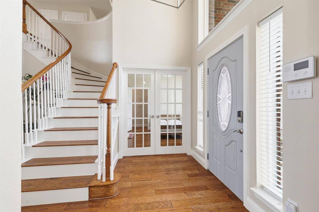 Step inside and you'll immediately notice the beautiful interior paint and seamless flow of manufactured hardwood flooring throughout the first floor. The layout is both open and flexible, beginning with a formal living and dining area that can easily adapt to your needs. A dedicated study with French glass doors provides the ideal work-from-home space.