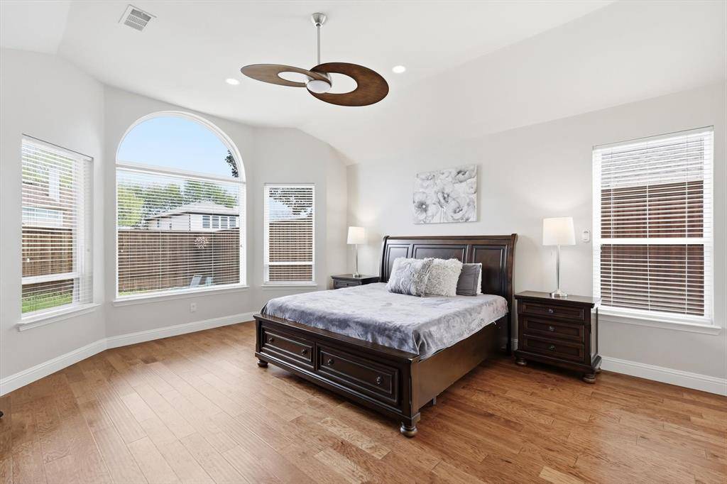 The oversized primary suite is conveniently located on the main level and offers a private retreat with a sitting area and a beautifully updated ensuite bath featuring a frameless glass shower and updated cabinetry. Upstairs, you'll find a spacious game room, three additional bedrooms, a Jack-and-Jill bathroom, and an additional full bath—providing plenty of room for family or guests.