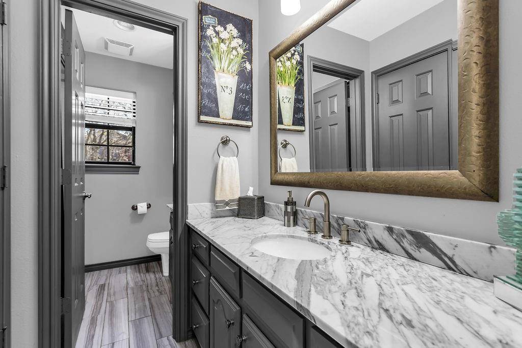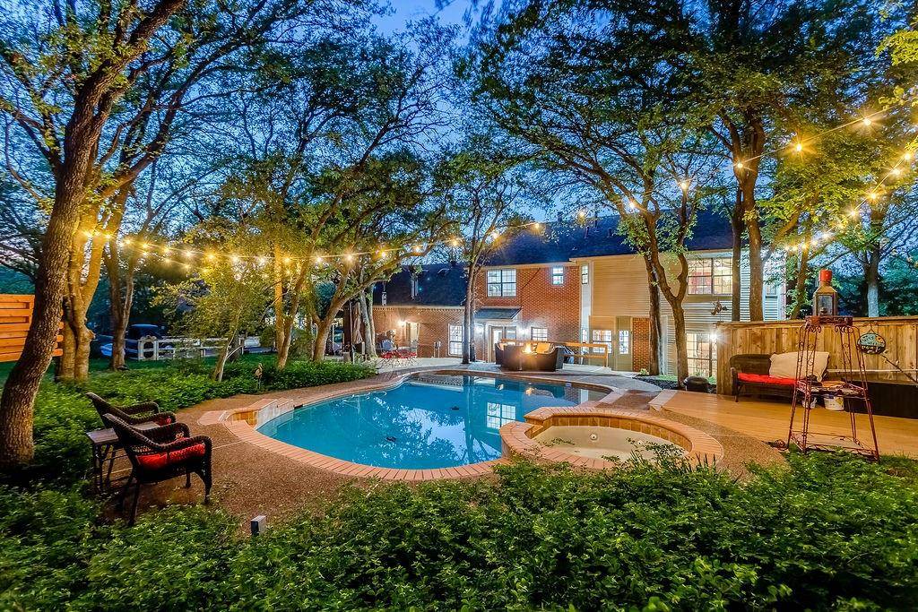 Tucked beneath a canopy of mature trees, this home feels like a quiet escape from the world, yet everything you need is just minutes away. Set on nearly an acre, the property invites you to slow down and breathe. Mornings begin with coffee overlooking the garden, afternoons unfold by the sparkling pool, and evenings are meant for gathering, whether in the open kitchen and living space, around one of the cozy fireplaces, or outdoor dining. The heart of the home is the kitchen, which flows to the living area and framed by views of the backyard, which creates a natural flow for both everyday living and effortless entertaining. Designed with comfort and functionality in mind, you'll find a dedicated home office, a wet bar for hosting, and abundant storage throughout. The oversized primary suite offers a peaceful retreat, complete with a sitting area, luxury bath, and custom closet. A separate guest suite with its own kitchenette provides privacy and flexibility for visitors or extended stays. About 22 minutes to DFW Airport, this home is also close to shopping, dining, and entertainment in nearby Flower Mound, Highland Village, Denton, Roanoke, and Southlake. This is more than a home. It's a place to unwind, gather, and truly live!