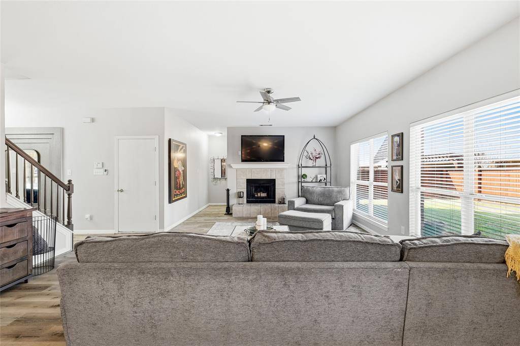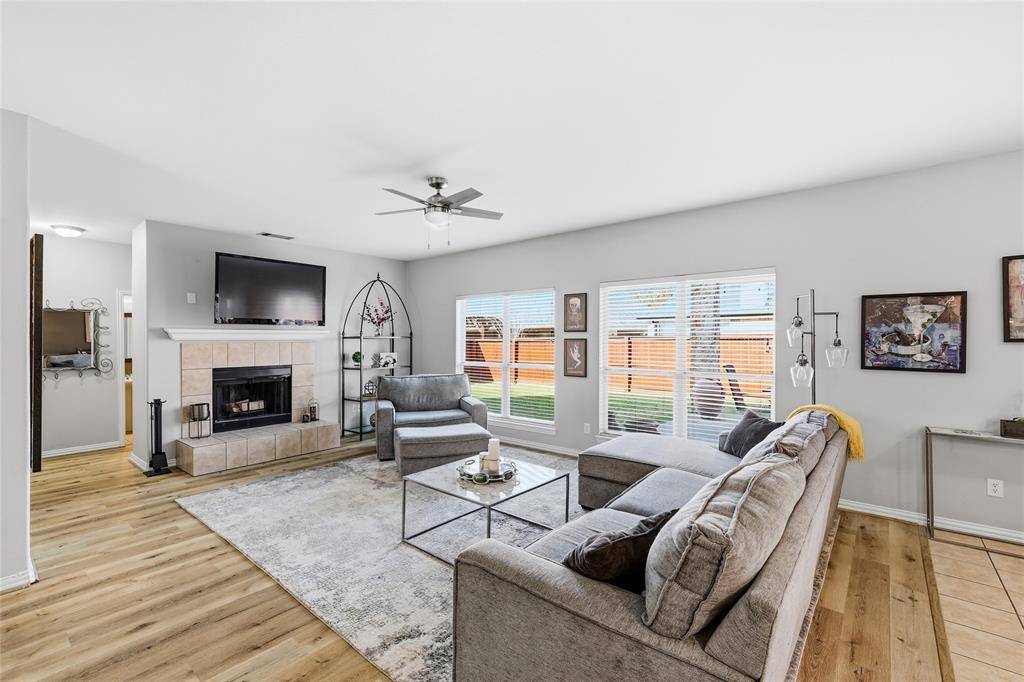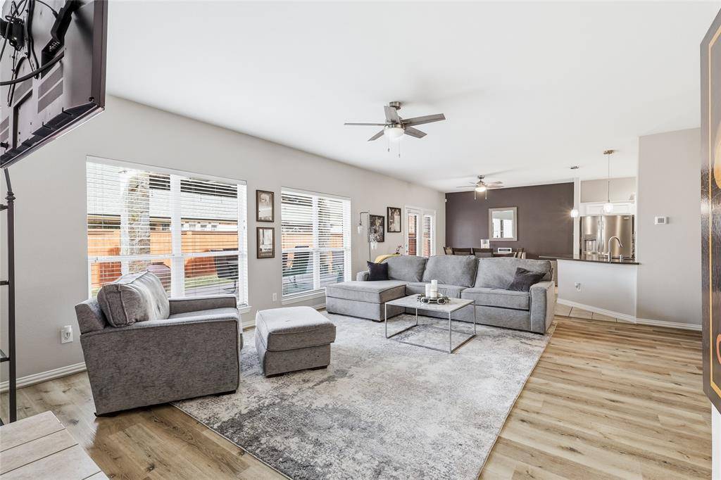 Beautiful 4 bedroom 2.5 bath home in the highly sought after Lantana! Open floorplan with abundant natural light. Spacious kitchen with granite countertops, stainless steel appliances. The living area is perfect for entertaining. The front room is a flexible space ideal for office or formal living. Upstairs features a large game room pre-wired for sound. Private primary en-suite features vaulted ceilings, sitting area, see through fireplace, double vanities, soaking tub, with a separate shower. Generous secondary bedrooms with walk in closets. Enjoy the large backyard with a pergola covered patio and ceiling fan. Entertain in the great outdoor living space. Lantana has beautiful amenities including golf course, pool. walking trails, and more. This beautiful property is move in ready. Welcome Home!