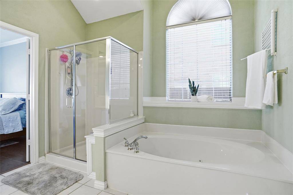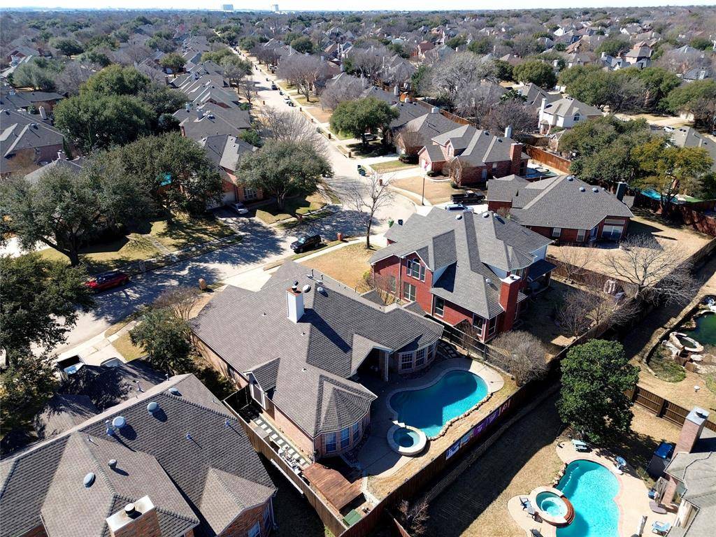 The immaculate 4-2-2 ranch in the heart of Flower Mound is just two doors down from the linear park system. The open concept kitchen is wonderfully updated with granite countertops, gorgeous cabinets, stainless steel appliances, a gas range, and a stylish vent hood. There is a large island, pantry, a breakfast area, and a butler's pantry. The primary bedroom feels like a five-star resort, featuring dual countertops, a separate jetted tub, and a walk-in closet with a California type closet system. The spacious living area has a gas log fireplace and a wonderful view of the backyard. The pebble tech surfaced pool and spa make a wonderful retreat for those warm summer days. There is a covered patio plus a safety fencing system for the pool. This property also has the added benefit of an extensive pre-inspection and numerous detailed repairs.