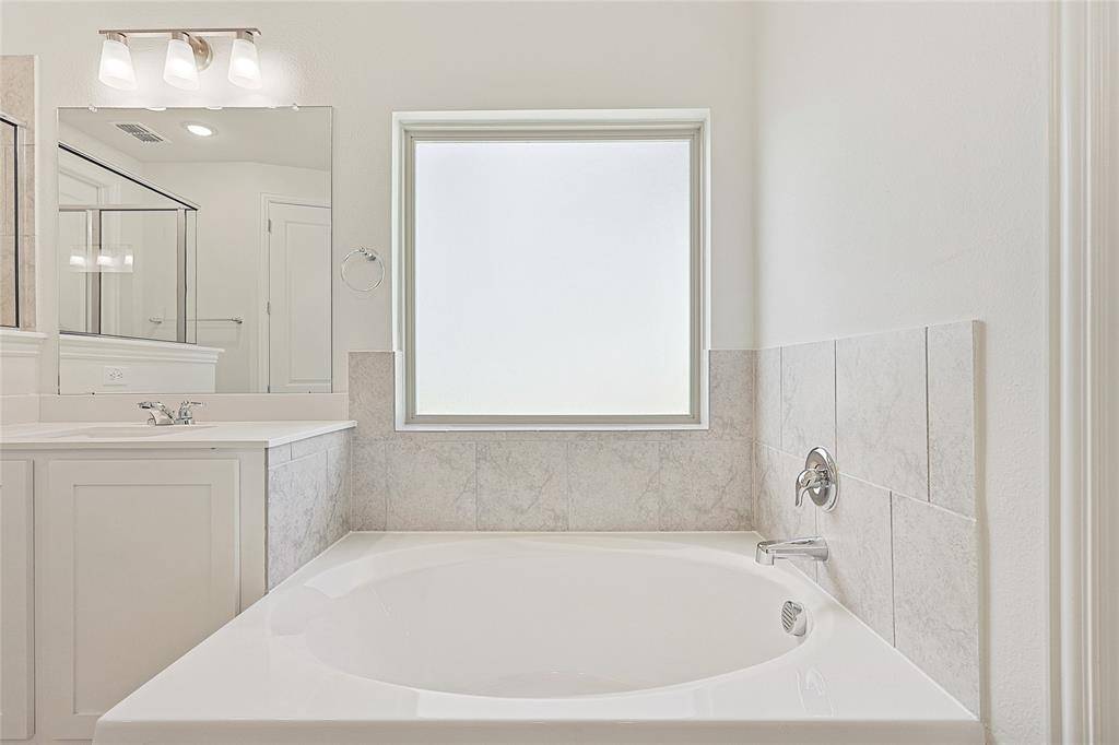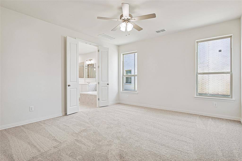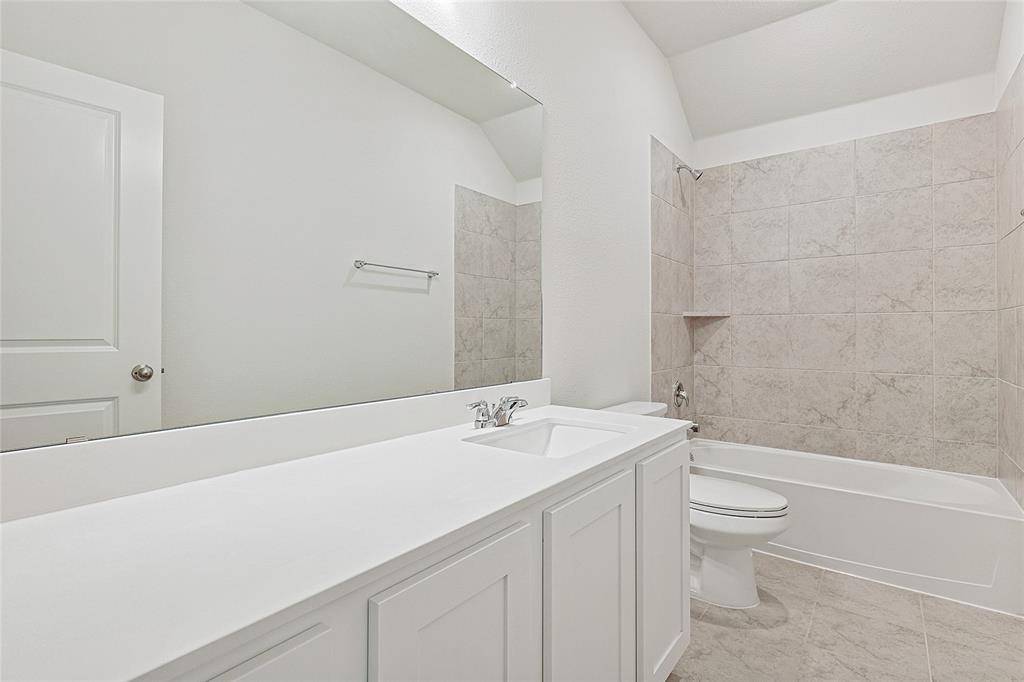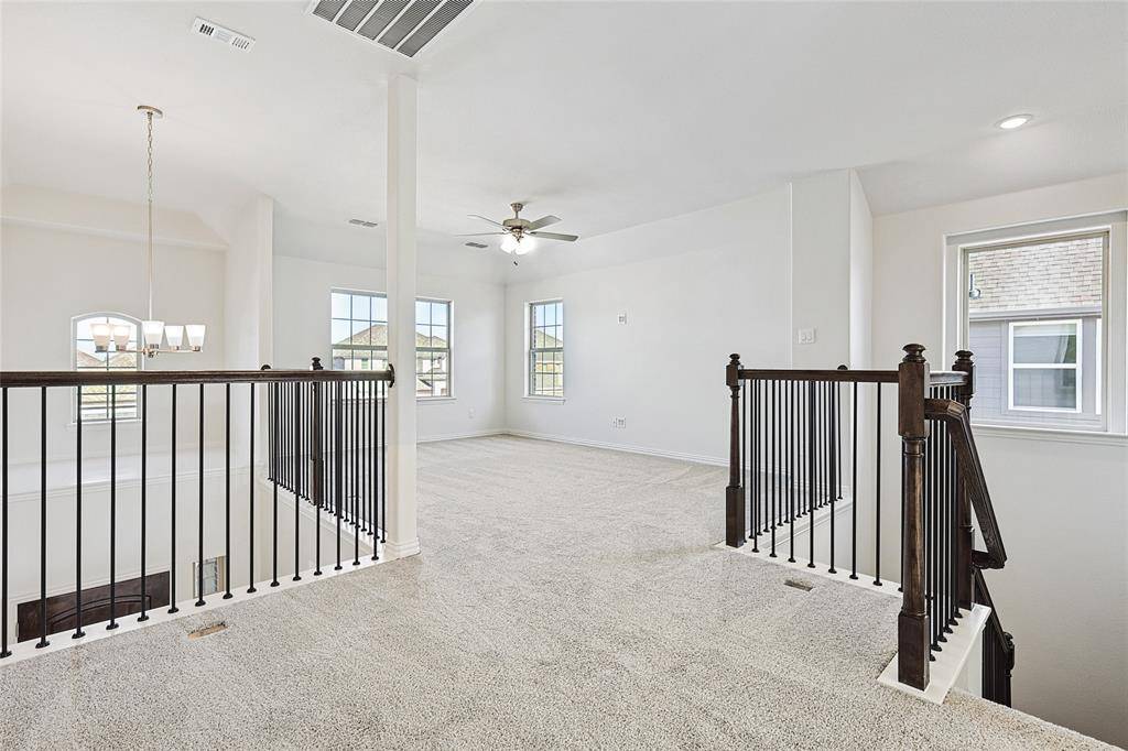 With 2,487 square feet of versatile living space, the Hickory floorplan offers plenty of room for everyone. As you enter, your attention is drawn to the back of the home, where expansive windows with 18-foot ceilings bring in natural light. Moving through the house, you'll pass a front secondary bedroom and bathroom ideal for guests or a home office. The kitchen features a spacious island with ample counter space and storage, serving as the centerpiece that flows into the dining and great room. The primary suite offers a private bath, complete with a soaking tub, separate shower, and a generous private closet. Upstairs, a large game room and two more secondary bedrooms with spacious closets sharing a full bath provide additional space for relaxation or entertainment. Situated near Lake Lewisville, residents can enjoy weekends filled with boating, fishing, and lakeside picnics, creating cherished memories with family and friends. For retail and entertainment, Golden Triangle Mall is just a stone's throw away, offering a plethora of shops and dining options to explore. Golf enthusiasts will delight in the proximity to the Oakmont Country Club, where they can perfect their swing or socialize with fellow members. Nature lovers will appreciate South Lakes Park, a serene oasis boasting scenic trails, lush green spaces, and recreational facilities for outdoor enjoyment.