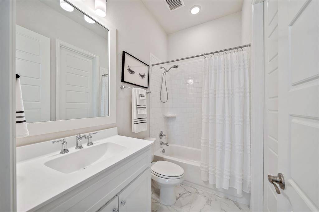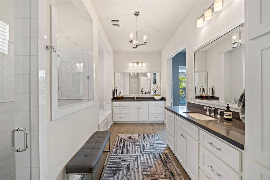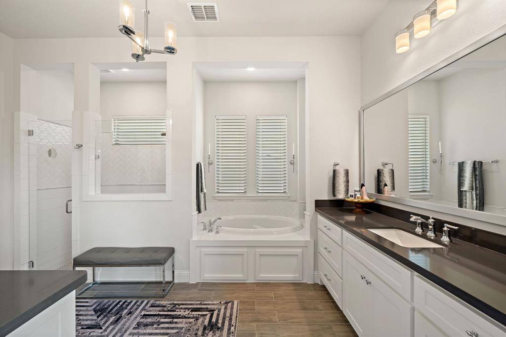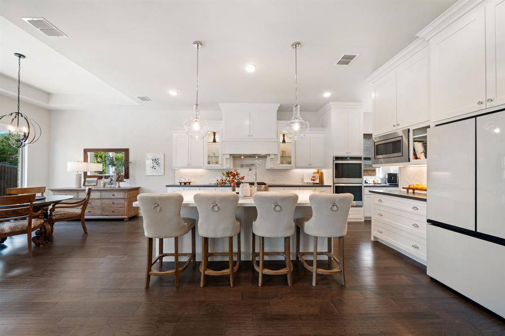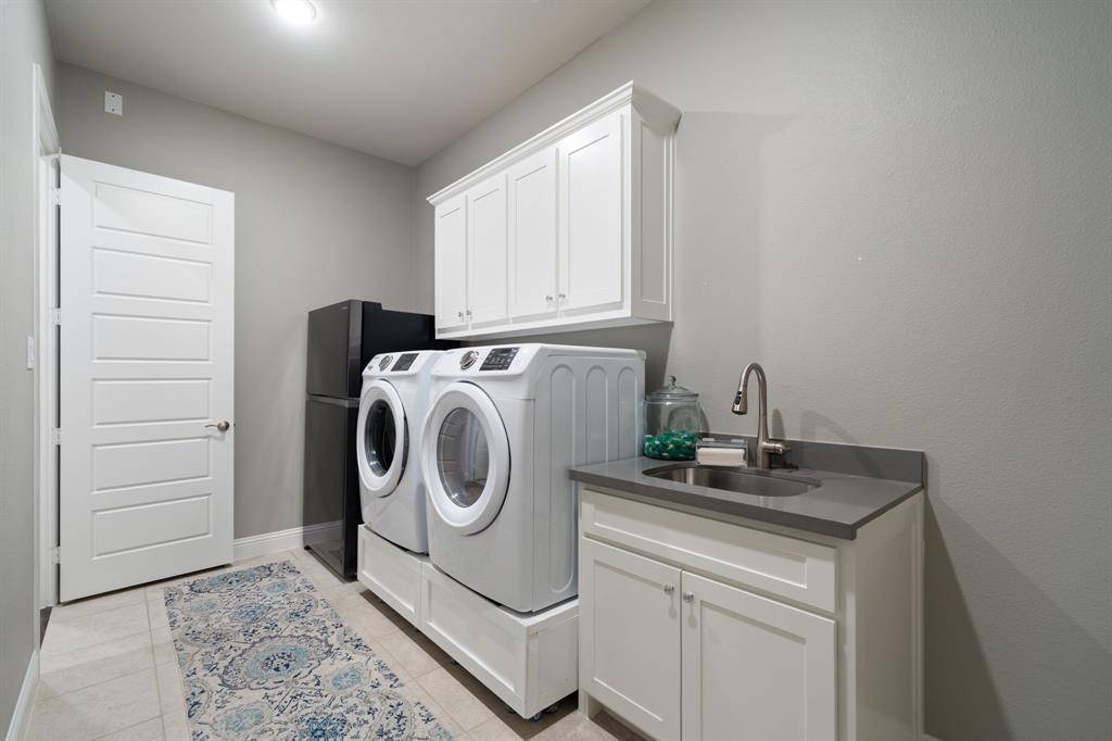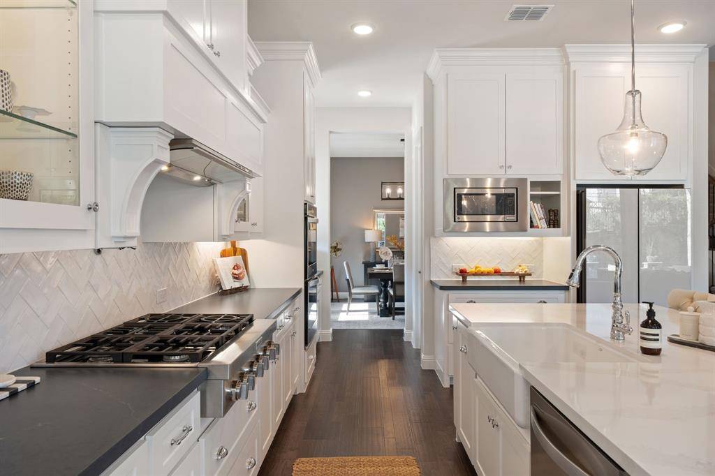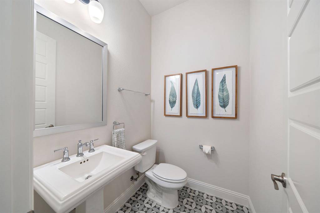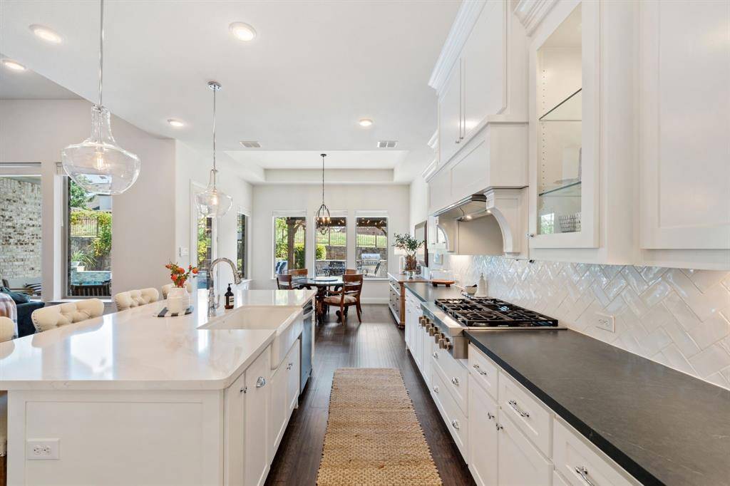 Gorgeous and immaculately maintained! Situated on a culdesac street with direct access to one of many paved trails of the master planned community Canyon Falls. This home exudes warmth and luxury from the moment you walk in. Warm wood flooring and neutral paint tones greet you as you enter. The main floor is perfectly laid out offering a dedicated office that could be utilized as a 5th bedroom, generous sized guest suite w full bath, half bath, massive utility room and a grand living room w wood beams, upgraded lighting and gas fireplace. Your dream kitchen awaits w tons of cabinetry, plenty of counter space, seated island, 6 burner gas stove, pot filler, double oven, pull out spice rack, polished nickel finishes and tons of natural light. The primary suite is tucked away with a spa like bath featuring separate vanities, soaking tub and frameless glass shower. You'll have sparkling pool views from almost every room on the main floor! The second story offers an additional living space, two bedrooms and two full bathrooms, one being ensuite and a bonus room, currently being utilized as a gym, but could be the perfect media room as it is wired for surround sound. The back yard is perfect for entertaining w covered patio overlooking the pool with waterfall features and LED lighting w smart app. The pergola is wired for surround sound and provides the perfect spot for outdoor cooking. There is extensive counter space for meal prep and serving, built in beverage fridge and direct plumbed Bull gas grill. Your new home comes w smart features for your sprinkler system, thermostats, pool and security. Canyon Falls is where nature meets community and offers tons of fabulous amenities for residents including pool, fitness center, pooch park, fishing, hiking, biking and tons of activities and events. HOA dues cover front yard maintenance, cable and internet. Located in one of the most desirable suburbs and zones to highly rated Argyle ISD and within walking distance to schools.