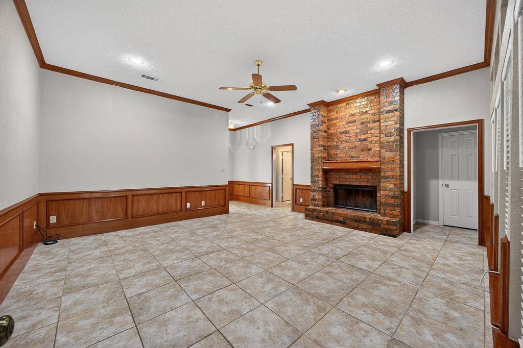 Inside, the home features three spacious living areas designed to give everyone room to relax and gather. The huge family room serves as the heart of the home, highlighted by a stunning floor-to-ceiling brick fireplace that creates a warm and inviting atmosphere. A separate game room or media room with a convenient wet bar provides the perfect space for entertaining friends or hosting family movie night. In addition, the enclosed covered patio offers year-round comfort under the homes updated central heating and air conditioning, creating a versatile bonus space that is not included in the home's stated square footage.