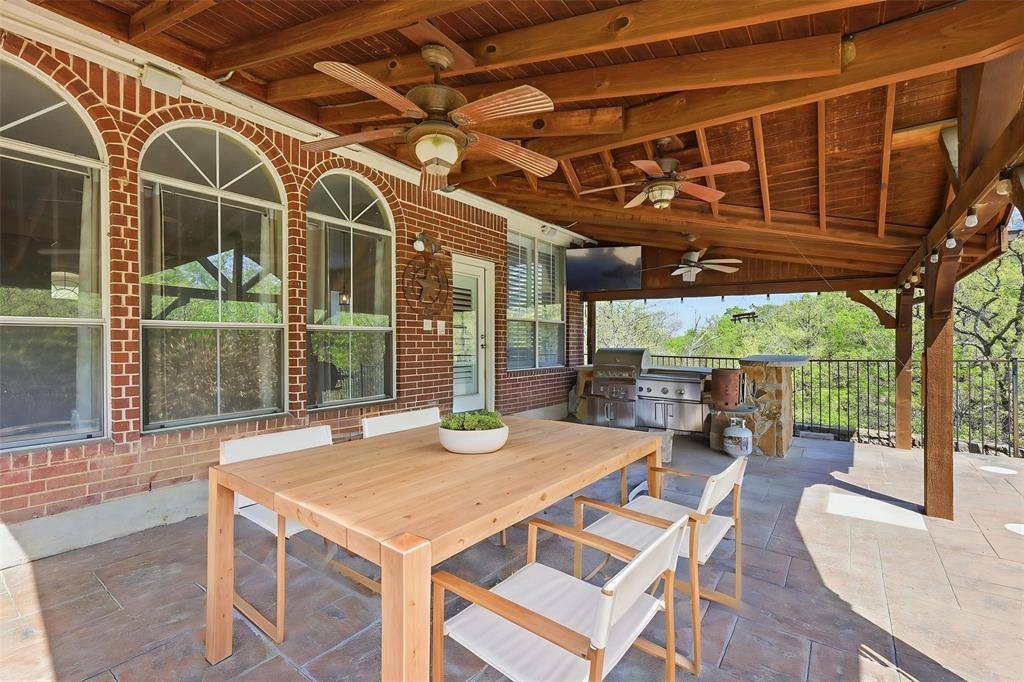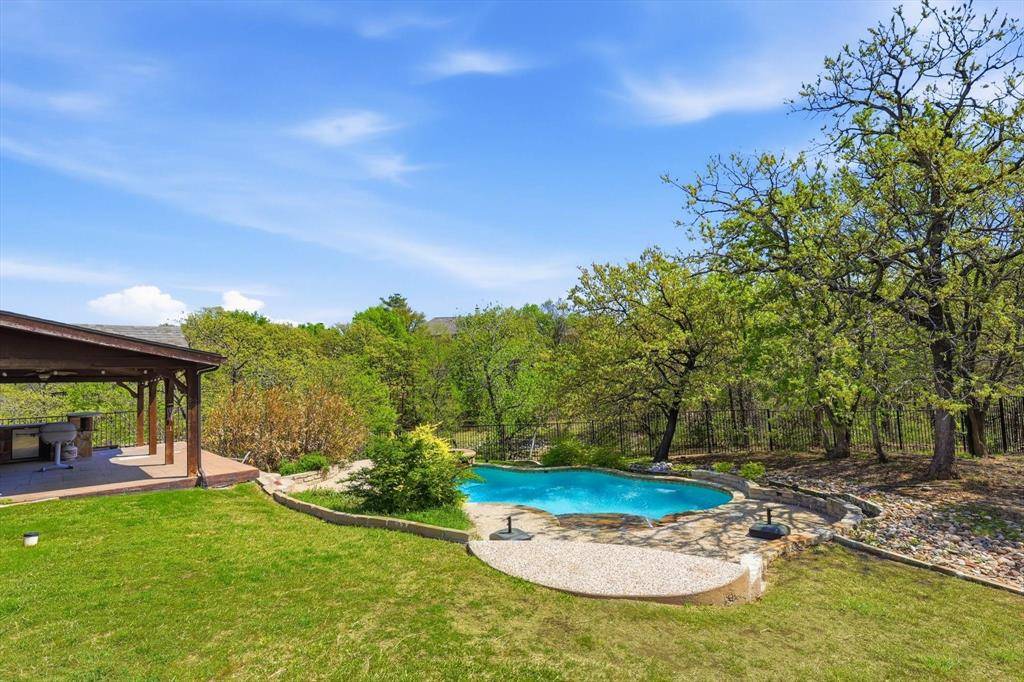 Nestled on a beautiful, treed creek lot in Highland Shores, this inviting home offers space, comfort, and wonderful outdoor living. The entry opens to a formal dining and a private study, creating an ideal layout for both entertaining and working from home. The home flows into a well-appointed kitchen featuring granite countertops and wonderful views of the backyard. The spacious family room showcases a cozy fireplace, custom built-ins, and walls of windows that bring in abundant natural light inside the home. Wood flooring and bright, open living spaces add warmth to the main areas. The private primary suite is conveniently located on the first floor, offering a quiet retreat. Upstairs, you'll find 3 additional bedrooms, a large gameroom, and a versatile bonus room. Enjoy the backyard oasis, complete with a large patio featuring a built-in grill and refrigerator, perfect for entertaining. The pool and spa overlook the peaceful creek and mature trees, creating a relaxing and scenic setting. Located in highly sought-after schools, with Highland Shores amenities, and is just minutes from the lake, parks, trails, and shopping. AGENT #2 FOR ALL QUESTIONS!!
