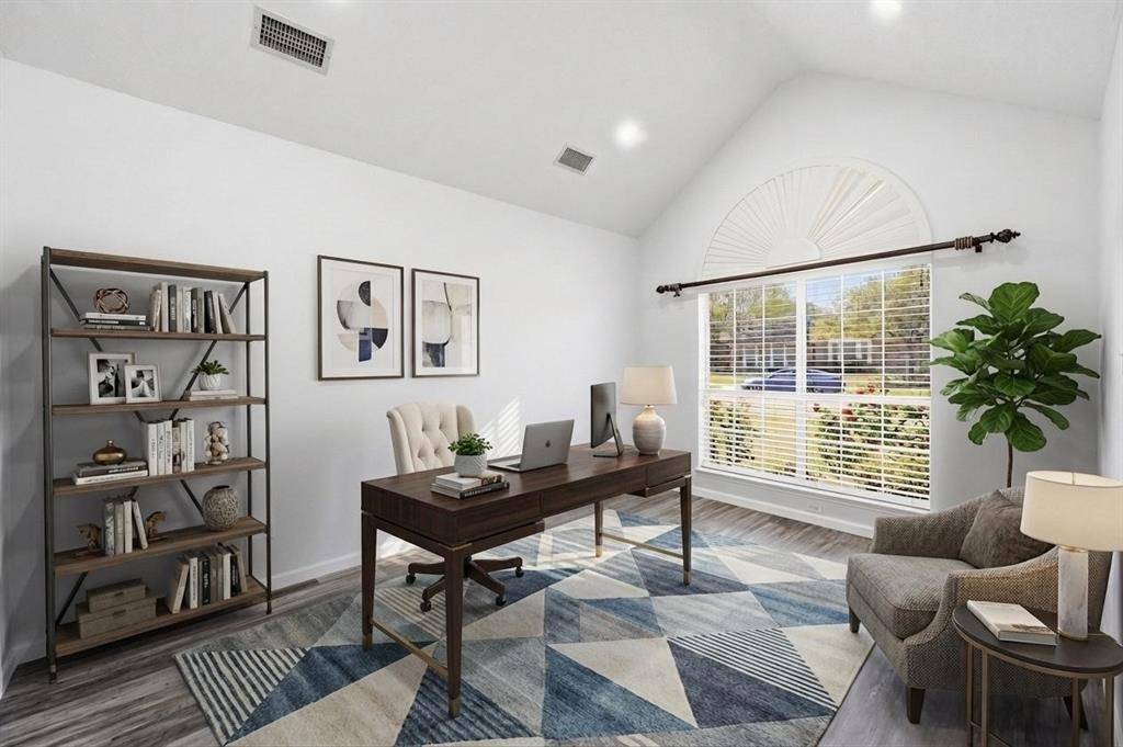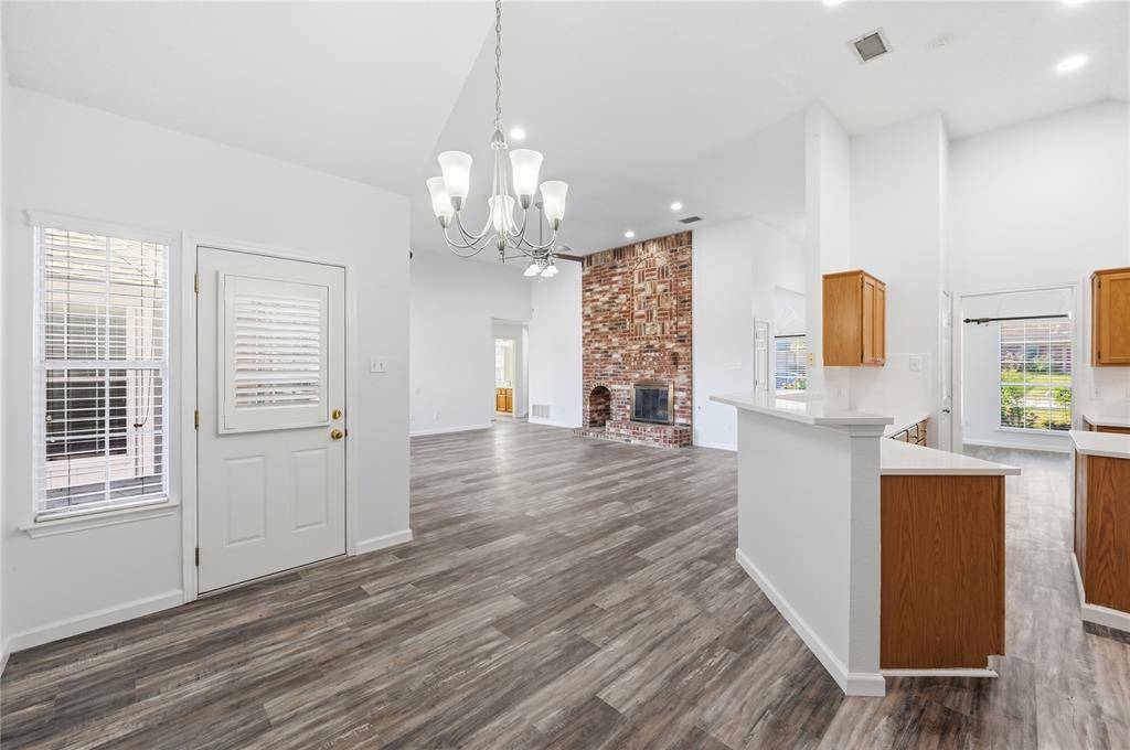Step inside a sun-drenched sanctuary where brand new luxury plank floors, tall ceilings, neutral colors, and an open-concept flow create an immediate sense of belonging and warmth. This Lewisville treasure invites you into a massive family room anchored by a floor-to-ceiling brick fireplace, perfect for enjoying the traditional crackle of a wood fire on a quiet evening. The heart of the home is a spacious kitchen featuring sleek quartz countertops, a central island, a pantry, and a convenient breakfast bar for morning coffee or casual entertaining. For those working from home, the formal living room offers the ideal layout for a focused and productive office space. Retreat to the updated primary suite boasting a bay window sitting area, a large frameless walk-in shower, a dual-sink quartz vanity, and a walk-in closet with built-ins. Enjoy the outdoors in your private backyard featuring a huge stamped concrete patio, offering both covered and open-air spaces for year-round gatherings. Practicality meets peace of mind with a recently replaced HVAC unit and superior parking options, including a two-car garage plus a two-car carport for a total of four covered spaces. Attends Valley Ridge Elementary School, an LISD STEM Academy. Quiet neighborhood with easy access to 35E for effortless commuting. Take a first-person look at this gorgeous home! Click the Virtual Tour link to see the 3D Tour!