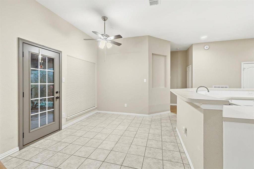 Situated on a 0.2180-acre lot, the property features mature landscaping, a grassy backyard, and a covered patio ideal for outdoor relaxation. Additional conveniences include a security system, full-size utility room, sprinkler system, and rain gutters. With proximity to South Lakes Park, I-35, shopping, dining, and Denton ISD schools, this home delivers both comfort and convenience in a sought-after location.