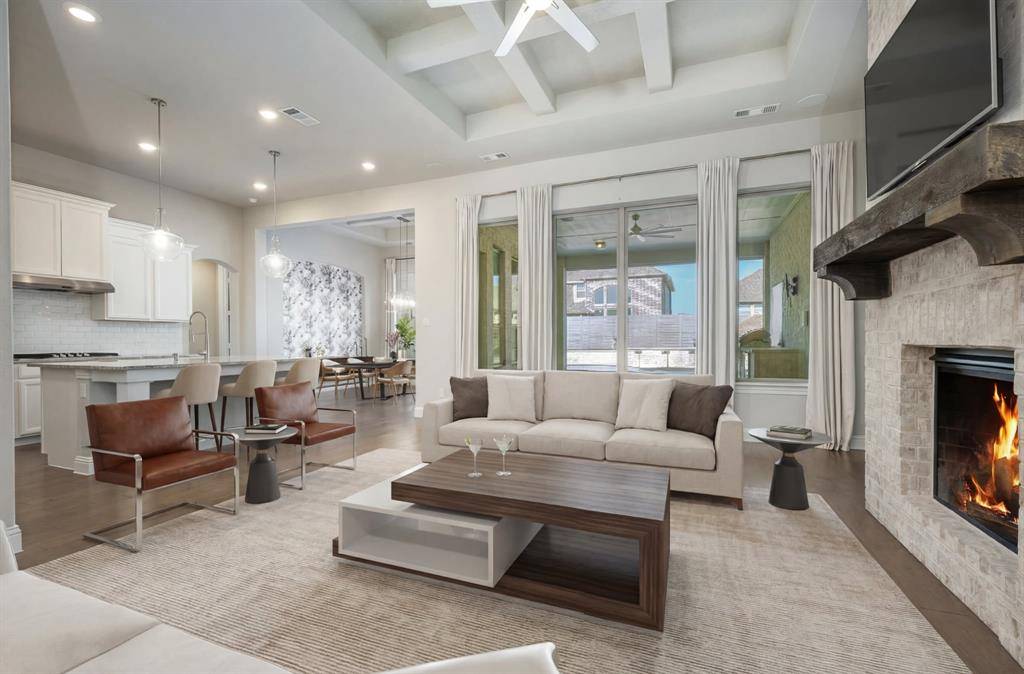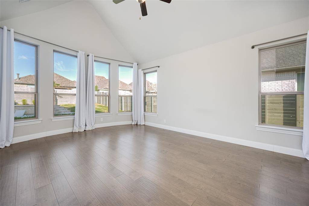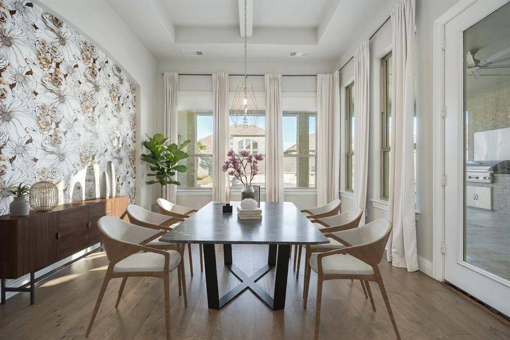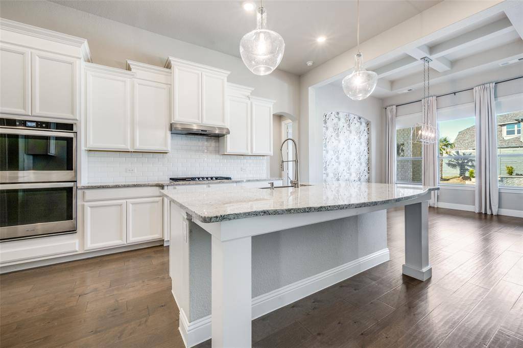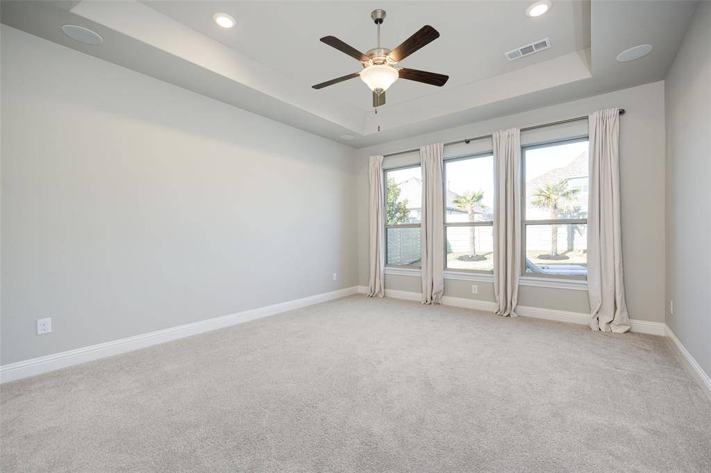 Like-new, one-story home at its best, located on one of the few cul-de-sacs in the highly desirable, award-winning Harvest community within Argyle ISD. This thoughtfully upgraded 4-bedroom, 3.5-bath, 3-car garage home also features a dedicated office and a media room, which offers flexibility and can easily function as a 5th bedroom if needed.One of the secondary bedrooms is designed as a private en-suite with its own separate entrance, ideal for generational living, guests, or extended stays.The open-concept living area seamlessly extends to the outdoor entertaining space. Step outside to a true resort-style retreat featuring premium travertine pool decking, a custom pool and spa, and a fully equipped outdoor kitchen—creating a backyard experience unlike any other in the community.Upgrades a custom stone landscaping border, enhanced professional landscaping, fresh interior paint, designer light fixtures, extended hardwood flooring flowing through the primary suite, primary closet, and private generational suite, and an enhanced in-ceiling speaker system in the main living and outdoor areas.This smart home makes life easy. Preheat the double oven, warm the spa, control HVAC and watch any of the 4 security cameras from anywhere.Harvest offers an unmatched lifestyle with multiple pools, fitness centers, parks, dog parks, volleyball and basketball courts, scenic walking trails, and a stocked catch-and-release fishing pond.A rare opportunity to own a move-in ready home with elevated upgrades in one of Argyle's most sought-after neighborhoods.