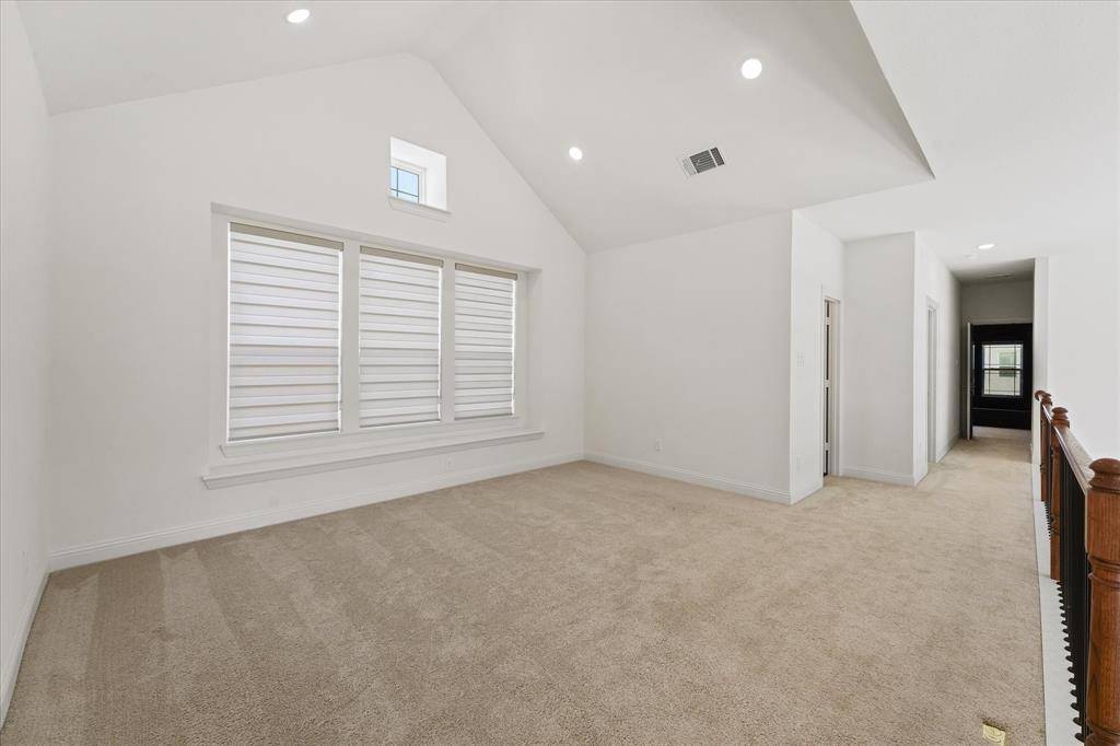 Welcome to 1549 Pirene Alley, Corinth, TX, a beautifully upgraded 4-bedroom, 3.5-bathroom home built by Grand Homes, offering 2,957 square feet of thoughtfully designed living space. This spacious floor plan features a private primary suite downstairs with a large walk-in closet and an ensuite bath, along with an open-concept living area connecting the kitchen, dining, and living room, perfect for entertaining. Upstairs, enjoy a generous recreation room, additional bedrooms, and a dedicated theatre room ideal for movie nights.