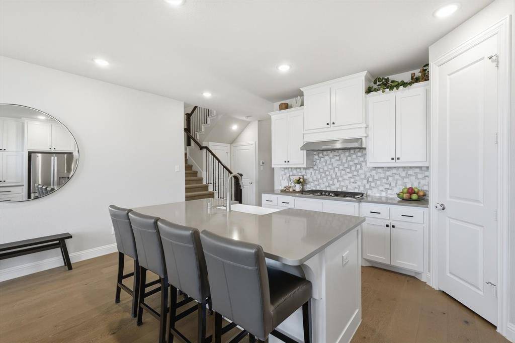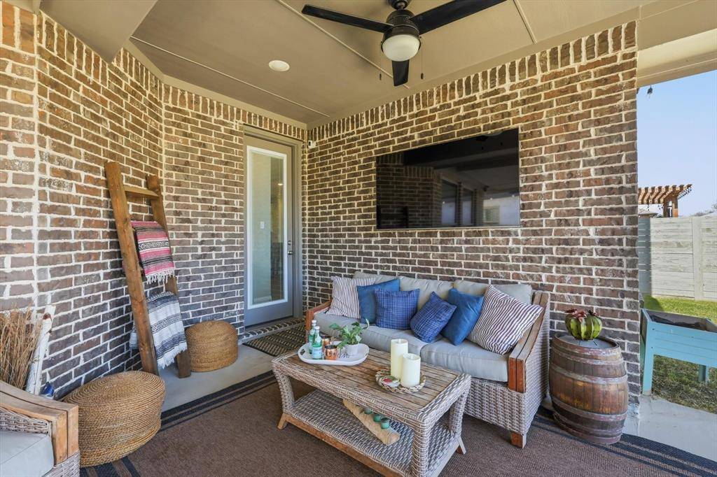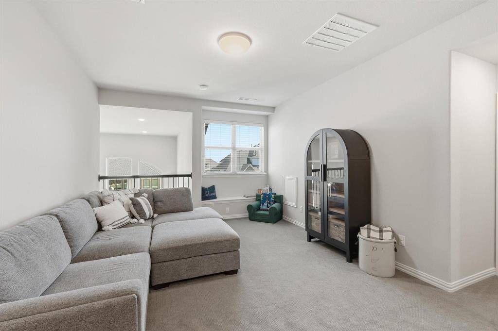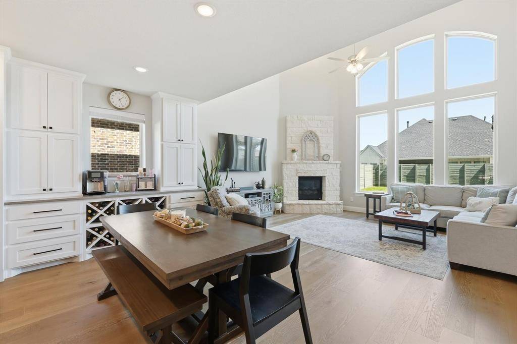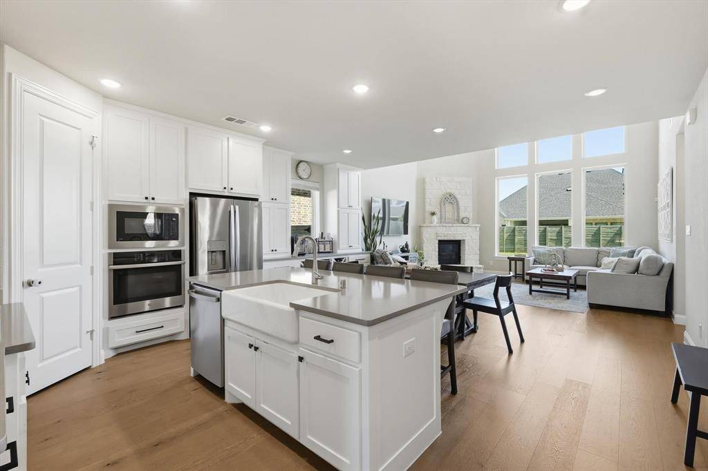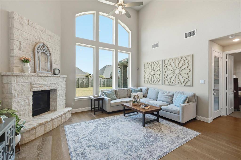 EXQUISITE newer home with amazing outdoor living area in Argyle! Fantastic layout with open floor plan and a two-story living room! Work from home with your amazing home office or use at 5th bedroom on first floor! Gorgeous luxury vinyl plank floors! Neutral decor! Whip up your favorite recipes in your gourmet kitchen with quartz countertops, stainless steel appliances, extra cabinets, PLUS a custom butler's pantry with wine racks, coffee bar, and storage! Cozy up to your beautiful Austin stone fireplace in your fabulous living room! A wall of windows with privacy! The primary bedroom boasts bonus room for sitting area and a spa-like retreat! Dual sinks, soaking tub, oversized shower, huge closet & more! Spacious first floor laundry and 2 full bedrooms and 2 full baths downstairs or use an office! Upstairs enjoy movies in your large gameroom! 3 more spacious bedrooms upstairs with 2 more full baths! Outdoor living at its finest! A one-of-a kind custom outdoor living space complete with a seated bar with room for a cooktop and grill! Plus, room to watch your favorite game on TV and make smores in your oversized patio! Build your dream pool or walk to the pool in the neighborhood! Enjoy the many amenities in Harvest with walking trails, pools, The Front Porch, The coffee shop, food trucks, gardens, and more! Walk to the schools in the neighborhood and enjoy the many activities Harvest and Argyle have to offer! Smart home features too for lights, front door, garage door, and oven! Run to see this one!