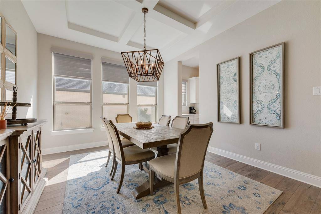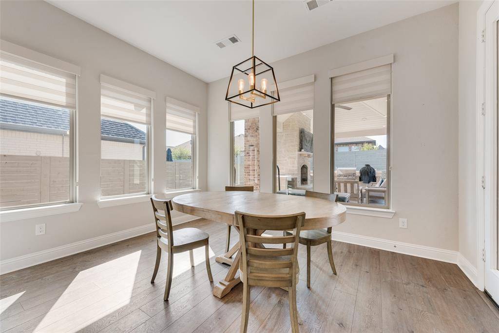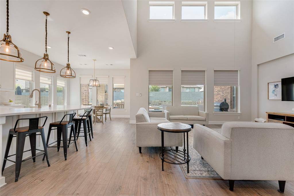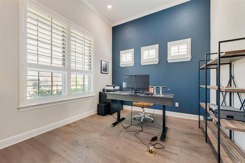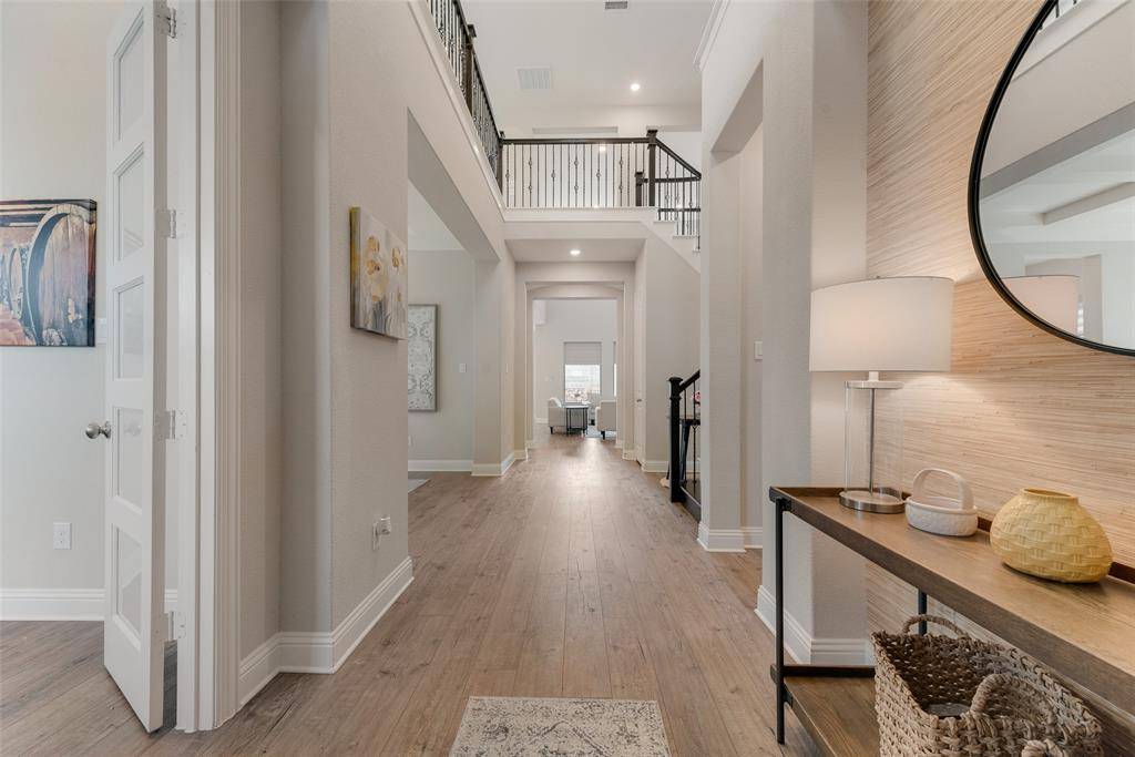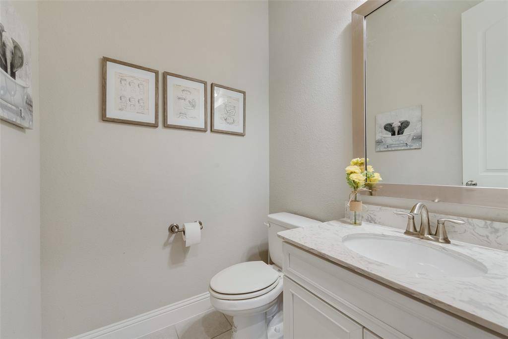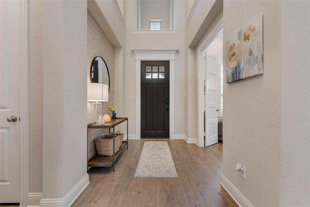 Inside the home you will find beautiful quartz countertops, luxury vinyl plank flooring, and high end finishes throughout. The media room projector and screen will also stay with the home, making the media room truly move in ready. The location cannot be beat with the elementary school within walking distance and easy access to shopping, dining, and the brand new Tom Thumb nearby.