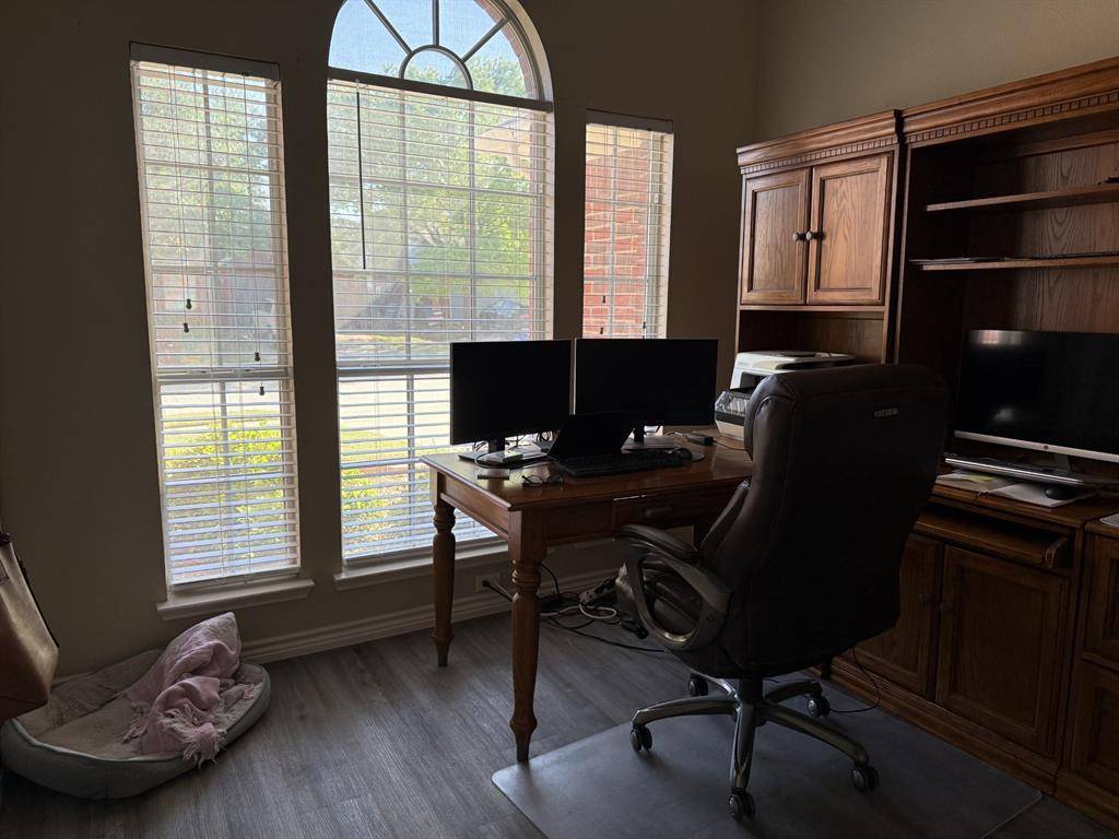 This beautifully maintained one-story home features 4 bedrooms, 2 bathrooms, and a 2-car garage, offering both comfort and functionality. The centrally located kitchen is the heart of the home, complete with a walk-in pantry, abundant counter space, and ample cabinetry perfect for everyday living and entertaining. The spacious primary suite is thoughtfully separated from the secondary bedrooms for added privacy and includes dual walk-in closets, double vanities, and a separate tub and shower. The home also features a new HVAC system and a new gas water heater for added efficiency and peace of mind. Conveniently located just minutes from Meadow View Park's scenic hiking trails, shopping centers, and with easy access to I-35E and Highway 2499. Zoned to highly rated Hawk Elementary and Guyer High School. Available for move-in May 1st.