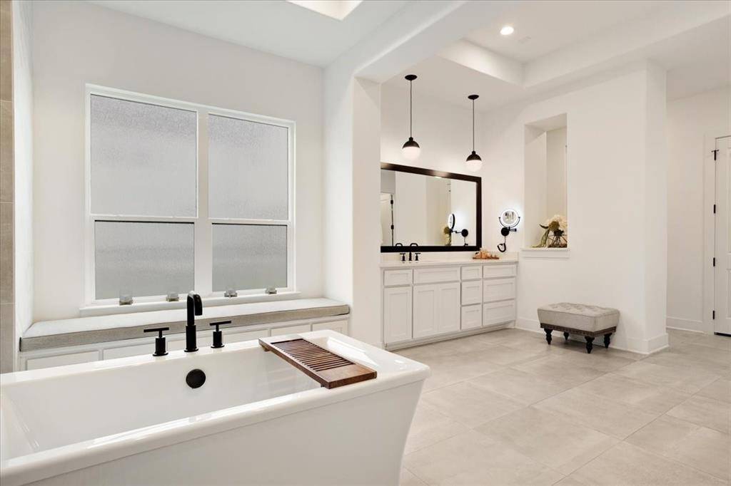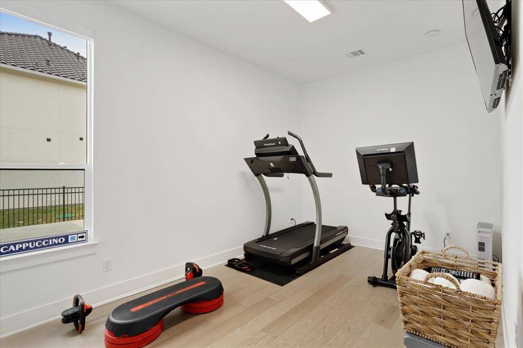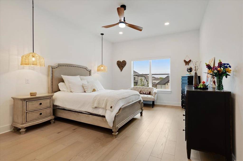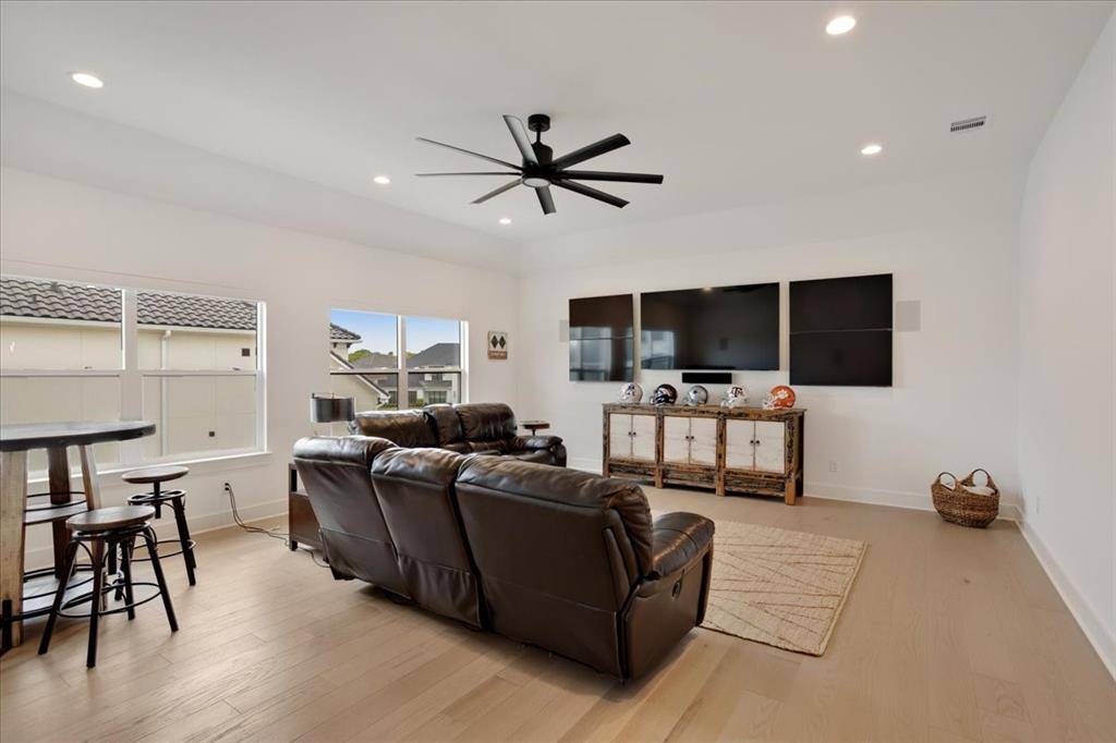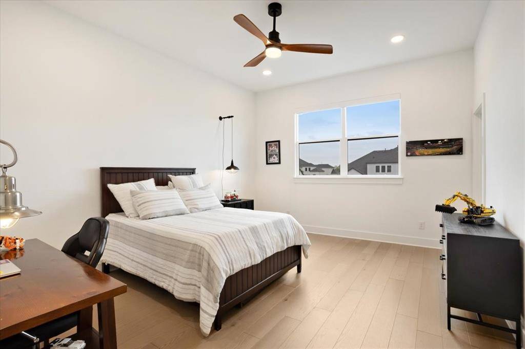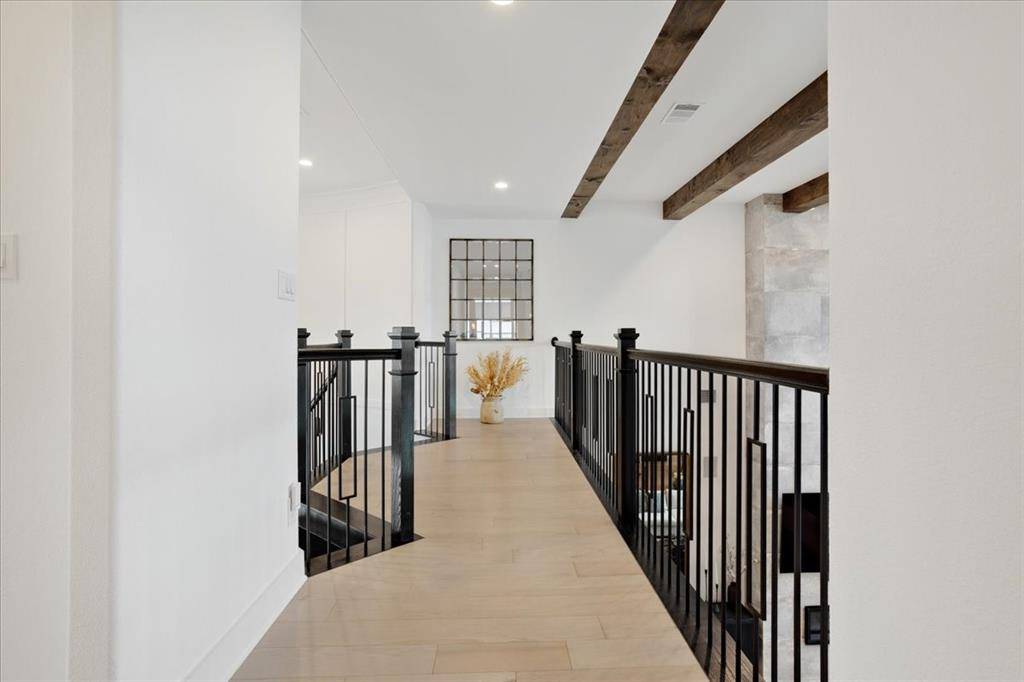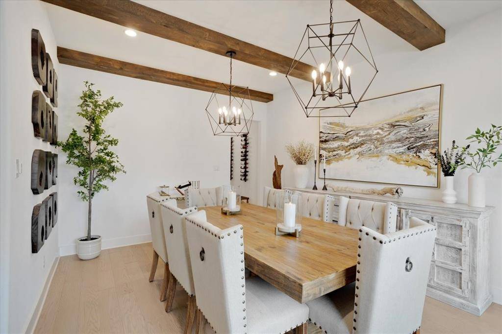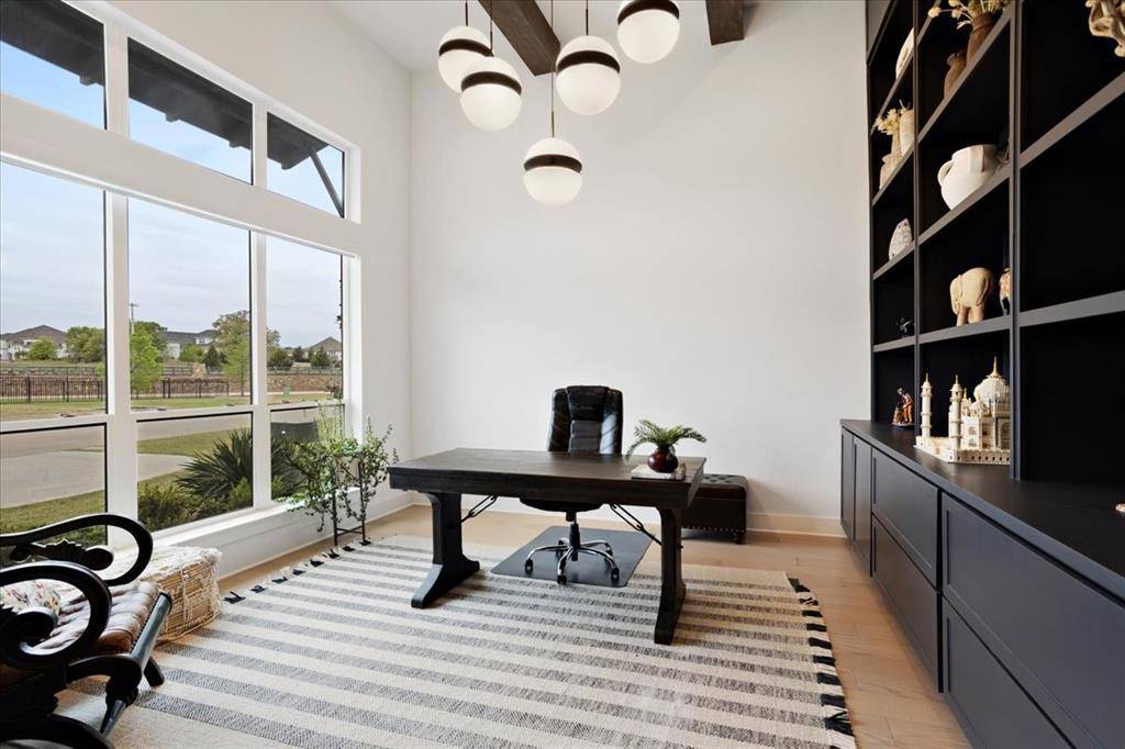 This exceptional two-story residence seamlessly blends modern transitional design with refined elegance, offering 4 spacious bedrooms, 4.5 bathrooms, expansive living areas, a game room, dedicated fitness room, a private office with custom built-in cabinetry-book shelves, an additional office nook, a 3-car garage with custom cabinetry designed for both style and functionality.
