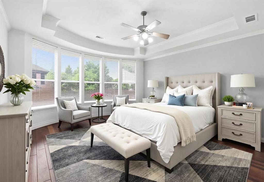 Experience the ultimate lifestyle in this completely remodeled Hillcrest at Wellington beauty, where every detail has been curated for modern comfort and effortless entertaining. Soaring ceilings and a stunning curved staircase create an immediate sense of scale, defining an open-concept floor plan that flows with sophisticated ease. Extensive wood flooring and fresh interior paint guide you into a chef-inspired kitchen featuring sleek quartz countertops, a decorative backsplash, and a five-burner gas cooktop. This culinary space serves as a central hub for daily life, offering under-cabinet lighting, a pantry, and seamless views into the inviting family room anchored by a gas log fireplace. Retreat to the private primary suite on the main level, a sanctuary boasting a tray ceiling and a spa-like ensuite with separate quartz vanities, a jetted tub, a frameless shower, and a large walk-in closet with built-ins and seasonal storage. Convenience is key with a secondary bedroom and full bath located downstairs, while the upper level provides a private game room and spacious bedrooms for total flexibility. Practicality shines in the oversized three-car garage, complete with epoxy flooring, a utility sink, and upgraded attic insulation. The low-maintenance backyard features a recently replaced fence, a spacious patio, and a gas stub ready for your summer grilling. As a Wellington resident, your weekends are elevated by world-class amenities, including pools, playgrounds, tennis courts, pickleball, volleyball, basketball, a 3-hole putting green, 9-hole disc golf, a fitness center, lakes, scenic trails, and more! Enjoy the perfect balance of community and comfort within the boundaries of highly sought-after Flower Mound schools, all while keeping you minutes from 2499 and DFW Airport. Take a first-person look at this gorgeous home! Click the Virtual Tour link to see the 3D Tour!
