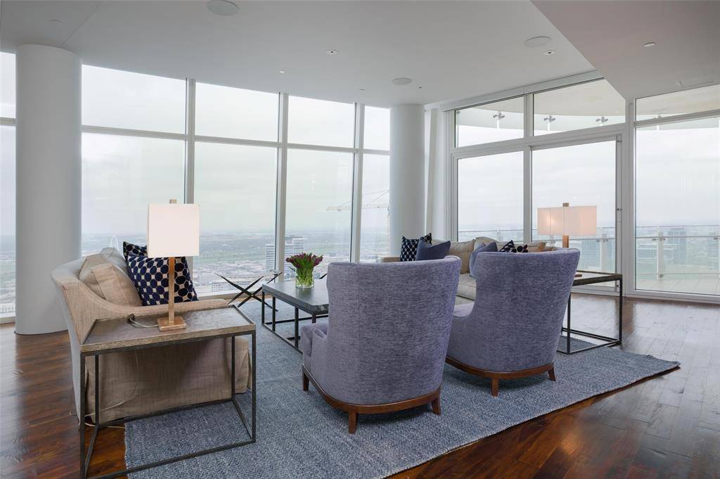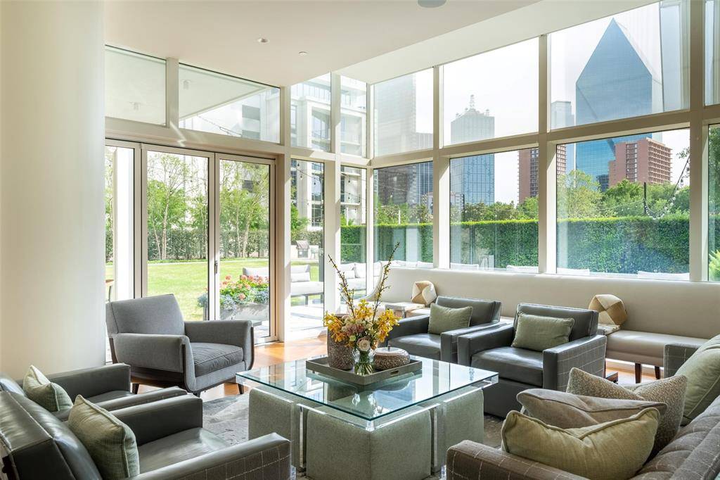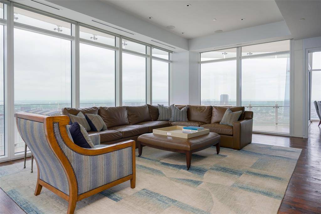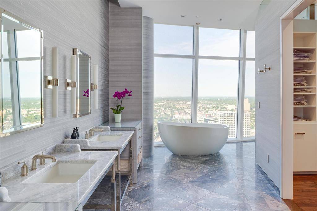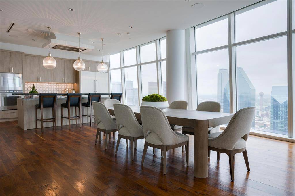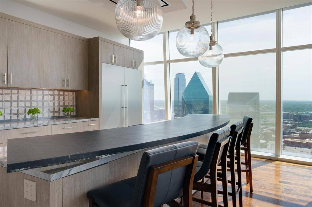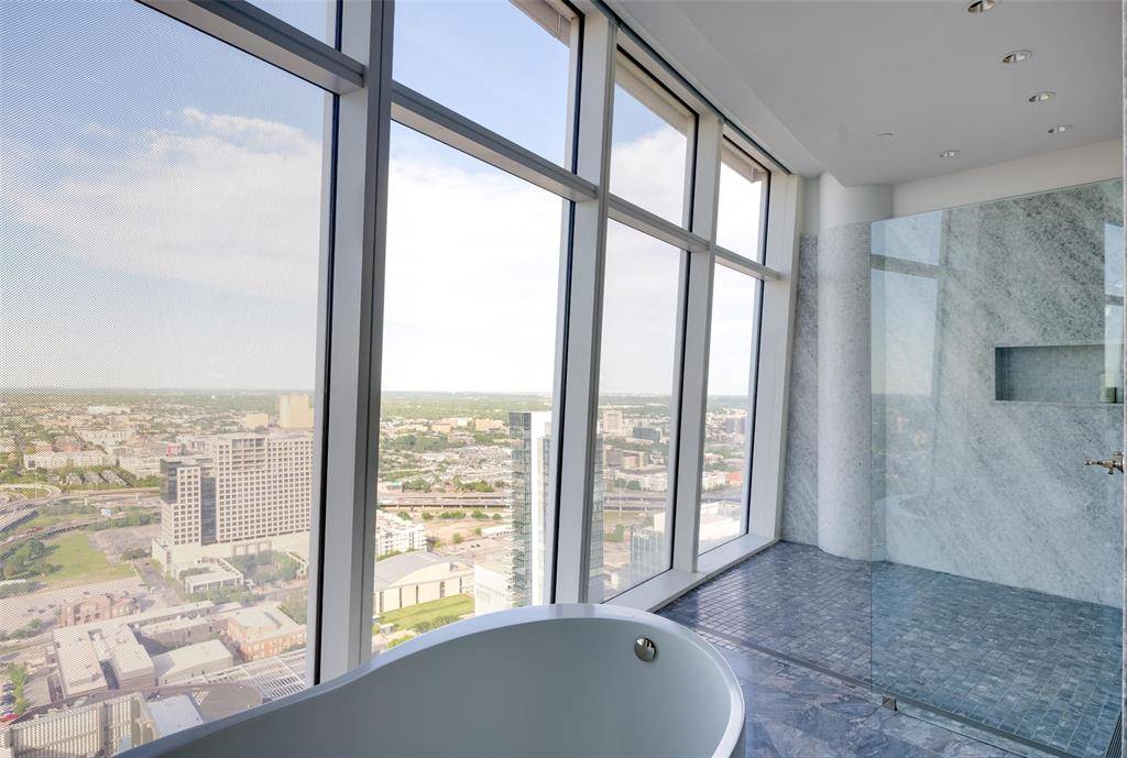 Enjoy magnificent sunrises and sunsets from this stunning 39th floor home in iconic Museum Tower. Unparalleled panoramic views capture the dramatic skylines and landmarks of both Uptown and Downtown Dallas. This rare home occupies a spacious half floor with 10' ceilings throughout and private elevator access into the home. Custom, luxurious finishes include walnut hardwood floors by French Brown, Phillip Jeffries wallpapers, Waterworks fixtures, Bardiglio and Palisandro marbles, and Blue Iceberg calcite. Kitchen features Gaggenau appliances including microwave, warming drawer, double ovens, separate steam oven, dual dishwashers, refrigerator-freezer, and wine refrigeration. Lutron HomeWorks lighting and automated shades. Control 4 media system and climate control throughout. Ideal location overlooking beautiful Klyde Warren Park, the Pritzker Prize-winning architecture of Dallas Arts District's performance venues and museums, and numerous restaurants. Available fully furnished.