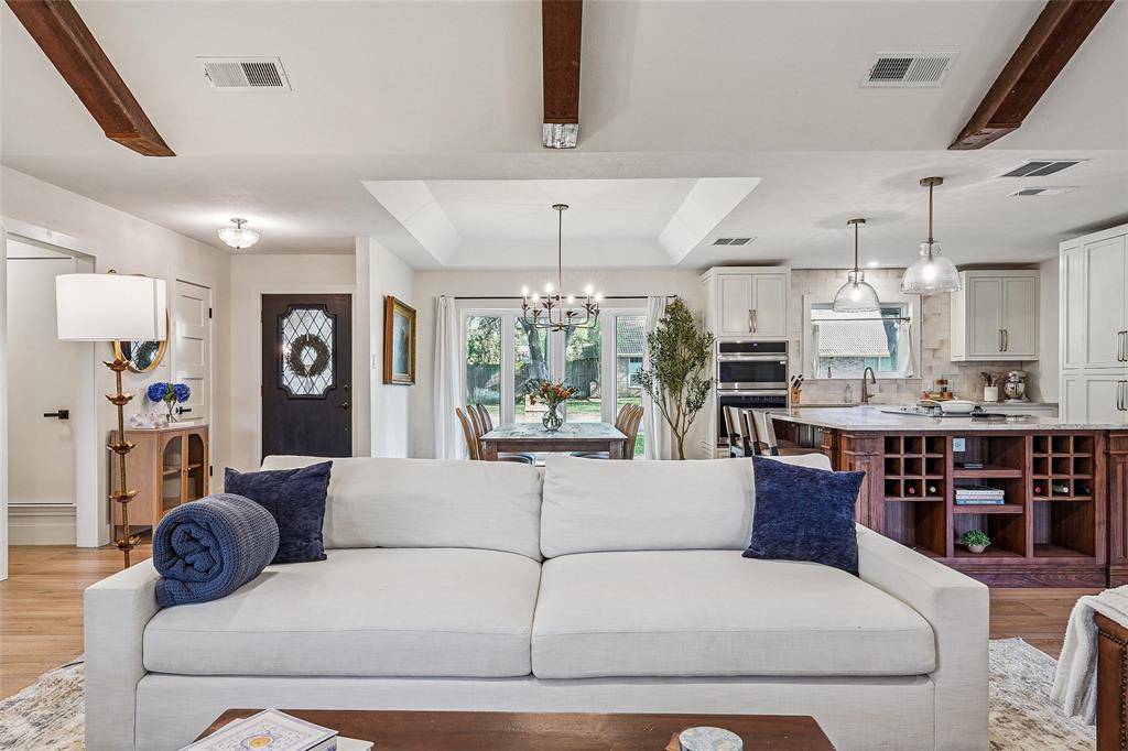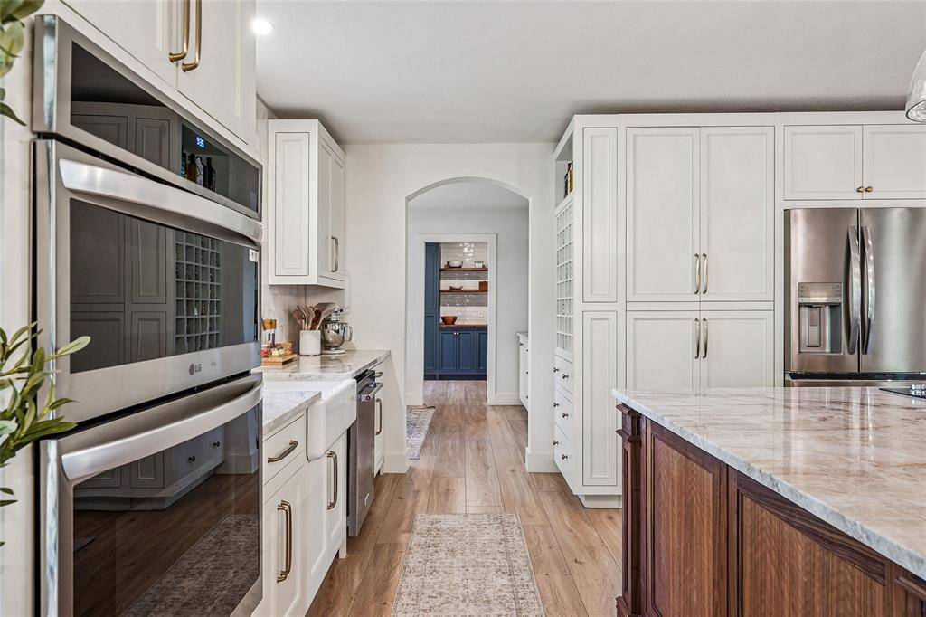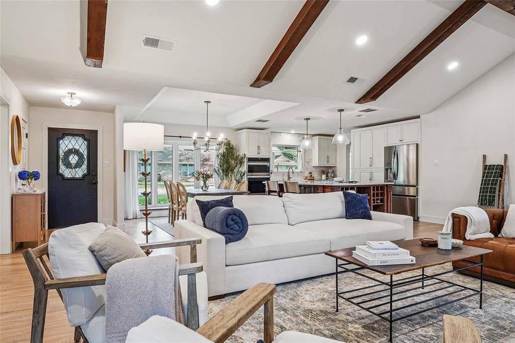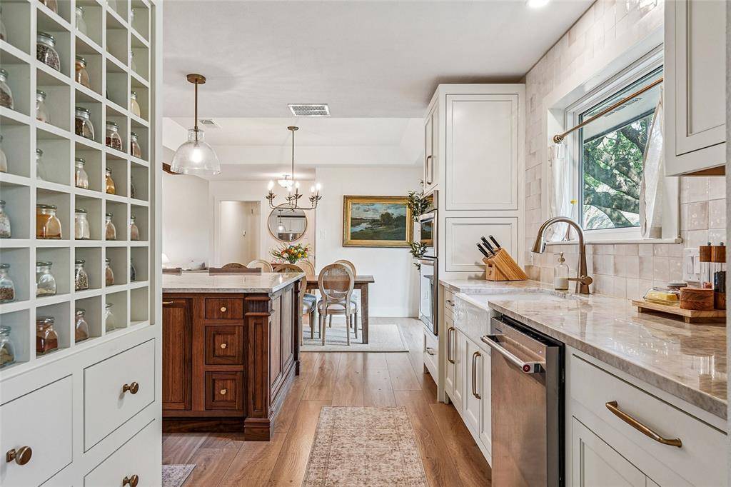 The open-concept floor plan welcomes you with abundant natural light, designer finishes, and high-end flooring throughout. The fully remodeled kitchen is a true showstopper, featuring sleek quartzite countertops, custom cabinetry, stainless steel appliances, and a spacious island perfect for entertaining.