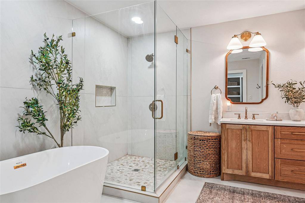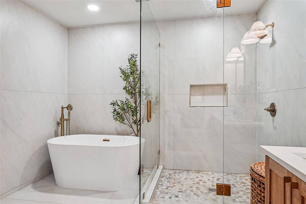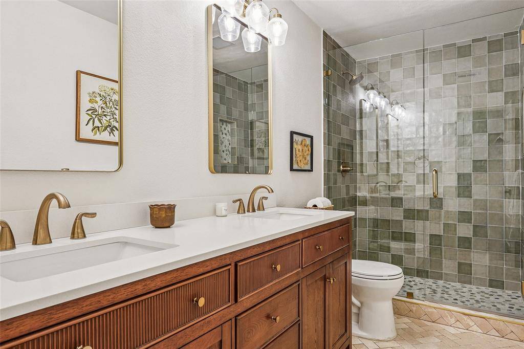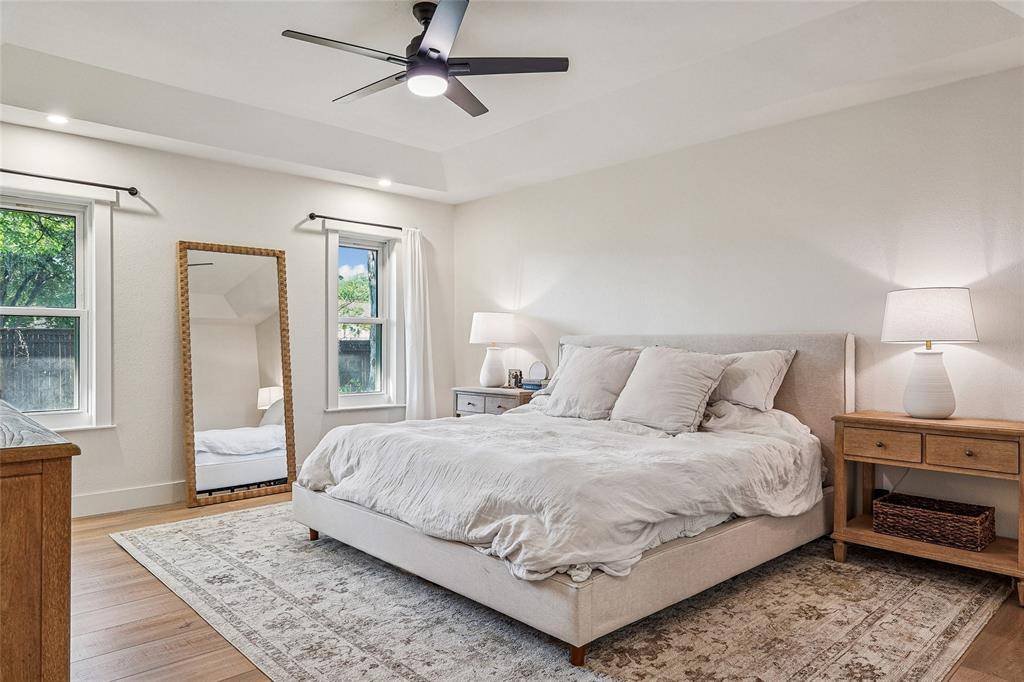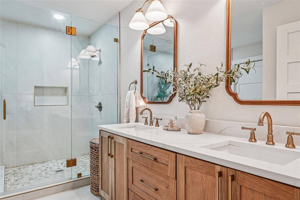 The open-concept floor plan welcomes you with abundant natural light, designer finishes, and high-end flooring throughout. The fully remodeled kitchen is a true showstopper, featuring sleek quartzite countertops, custom cabinetry, stainless steel appliances, and a spacious island perfect for entertaining.