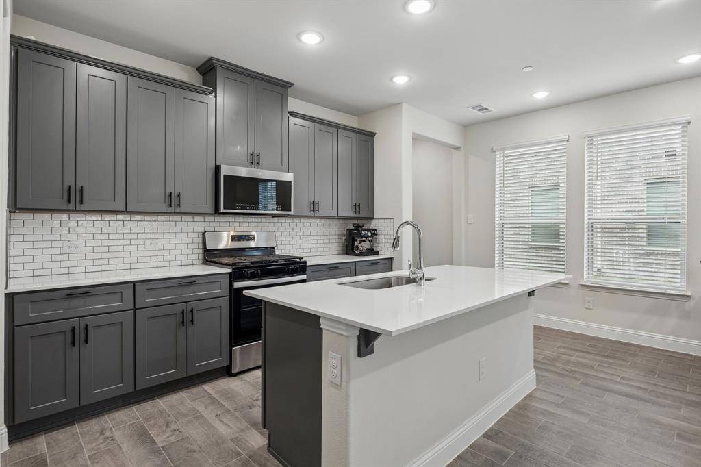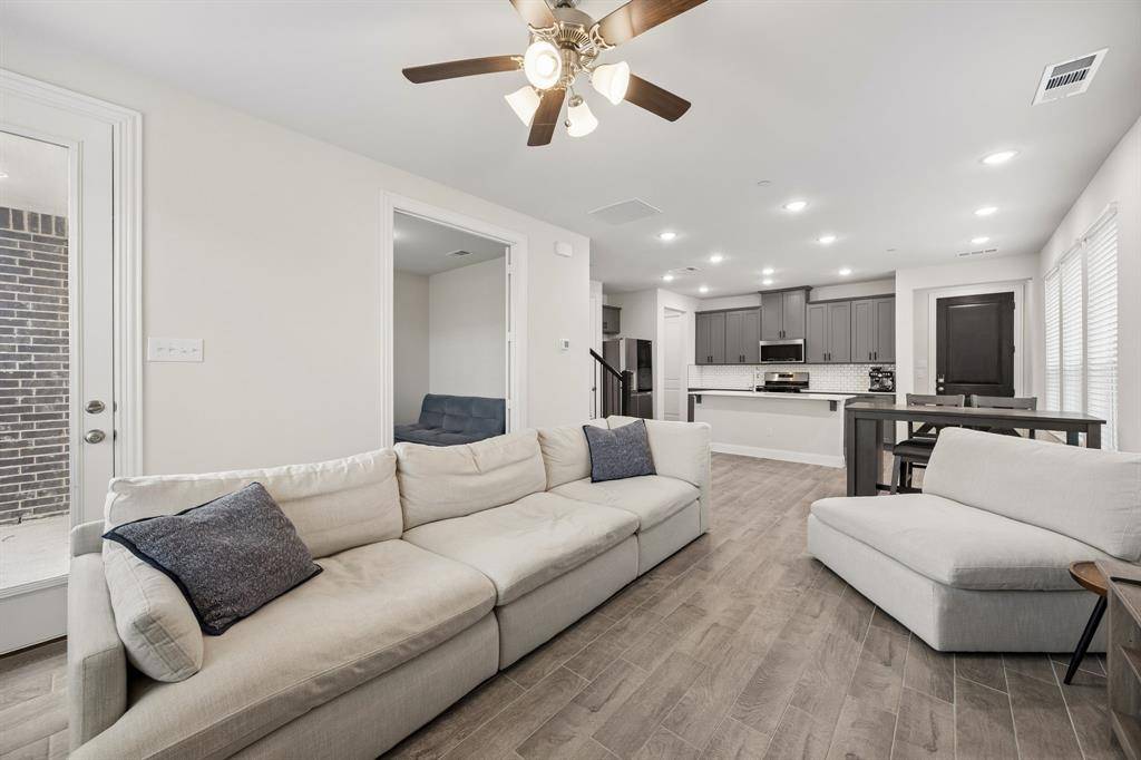 Barely lived in by one owner, this well maintained corner-unit townhome offers the easy, stylish lifestyle buyers want in a sought-after Allen ISD community! Filled with natural light, the open-concept layout features a spacious living room with fireplace, a double-door flex space ideal for a home office, study, or second living area, and a convenient first-floor half bath for guests. The kitchen is beautifully finished with quartz counters, stainless steel appliances, gas cooktop, pantry, and a large island that anchors the main living space for everyday living and entertaining. Upstairs, the private primary suite offers a large walk-in closet and a bath with double sinks, while the secondary bath also features double sinks for added convenience. Two additional bedrooms and an upstairs laundry room add everyday function. Enjoy a private backyard, 2-car garage, and HOA-covered front yard maintenance including watering and weed control. Buyers will also love the location near HEB, Kroger, Whole Foods, shopping, dining, schools, and quick access to US-75.