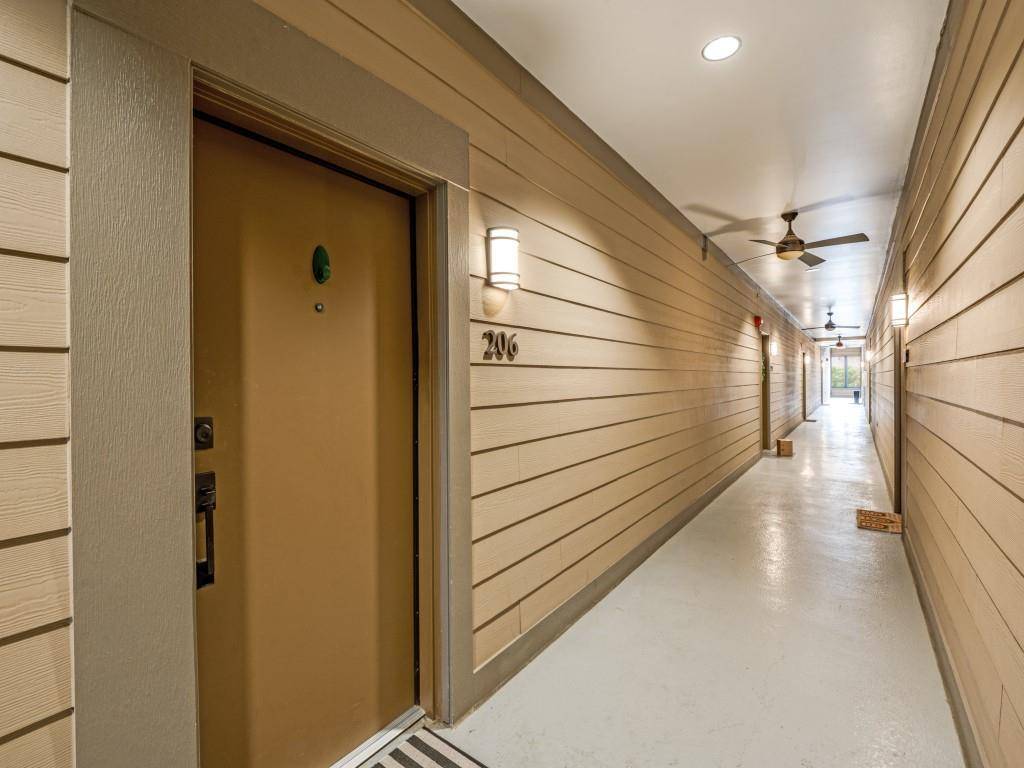 Unwind on the private 80 sq ft balcony, ideal for morning coffee or evening relaxation while enjoying pleasant views of the vibrant shops below. Hard-surface flooring runs throughout the home, featuring warm hardwoods in living and sleeping areas and tile in the bath.