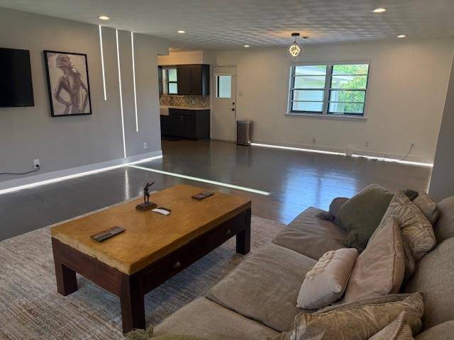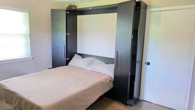 Step inside to an open and inviting living space featuring rich wood flooring, updated lighting, and electric shades. The kitchen has been thoughtfully renovated with new cabinetry, sleek countertops, designer backsplash, farmhouse sink, and stainless-steel appliances, making it both functional and visually stunning. One of the bedrooms also features a murphy bed a great space saver.