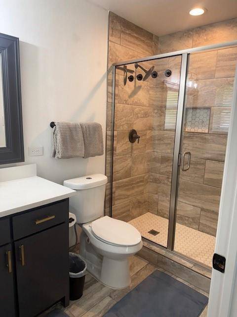 The home offers well-appointed bedrooms, including a spacious primary suite with a custom accent wall and a beautifully updated bathroom featuring a walk-in shower and modern finishes. Secondary bathrooms have also been upgraded with contemporary fixtures and tile work.